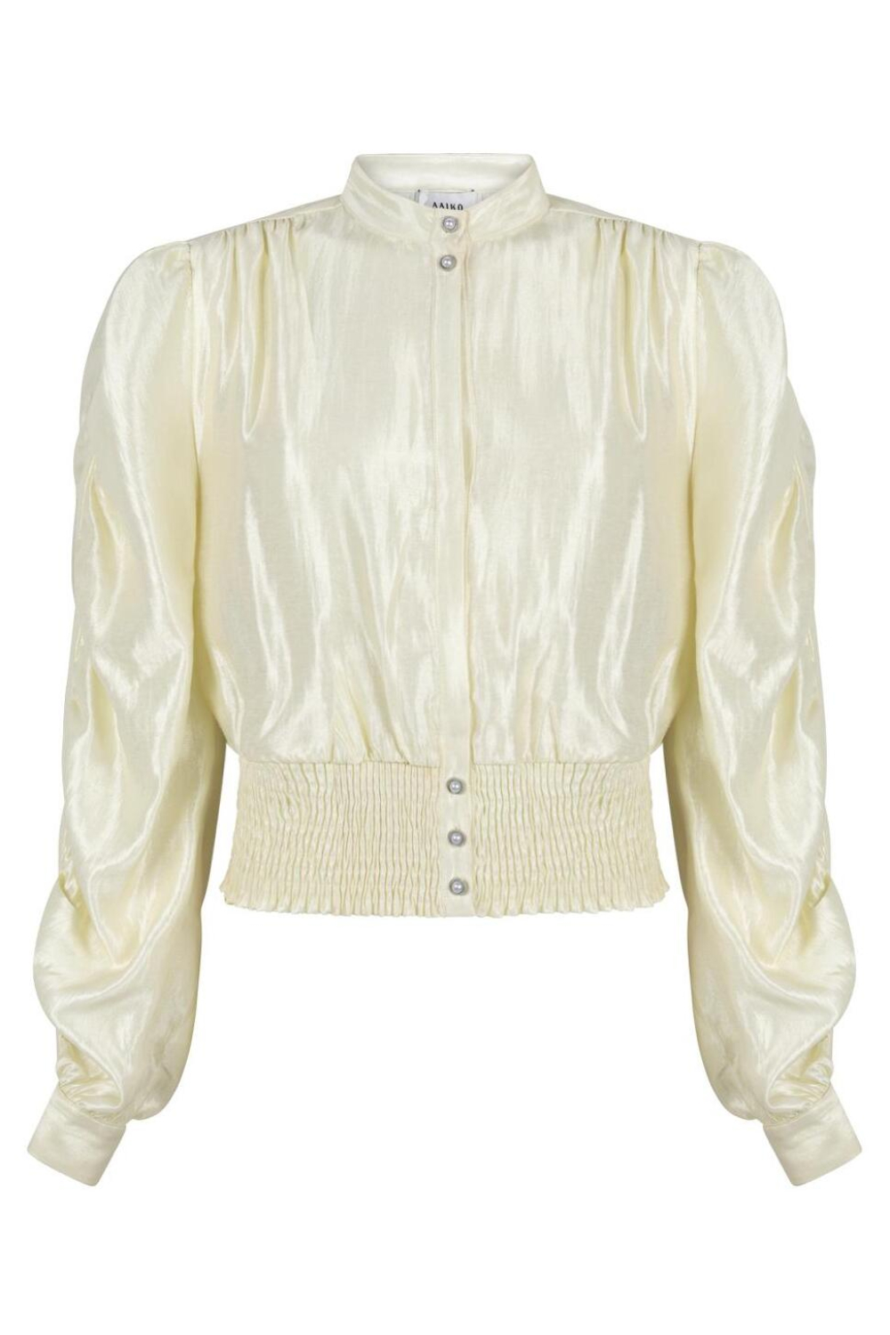 Deze chique glanzende blouse van Aaiko is een stijlvolle toevoeging aan je garderobe. Met een elegante ronde hals en een subtiele blinde knoopsluiting, straalt deze blouse verfijning uit. De opvallende glans van de stof, gecombineerd met de lange pofmouwen, geeft een moderne twist aan een klassiek ontwerp. Ideaal voor de lente, biedt de blouse een luchtige en luxueuze uitstraling dankzij de mix van viscose, polyester en polyamide. De korte lengte en de geplooide tailleband zorgen voor een flatterende pasvorm die goed te combineren is met zowel high-waisted jeans als een nette rok. Of je nu een dag op kantoor hebt of een etentje, deze blouse past perfect bij semi-formele en feestelijke gelegenheden. De veelzijdigheid van dit kledingstuk maakt het een slimme keuze voor elke modieuze gelegenheid.