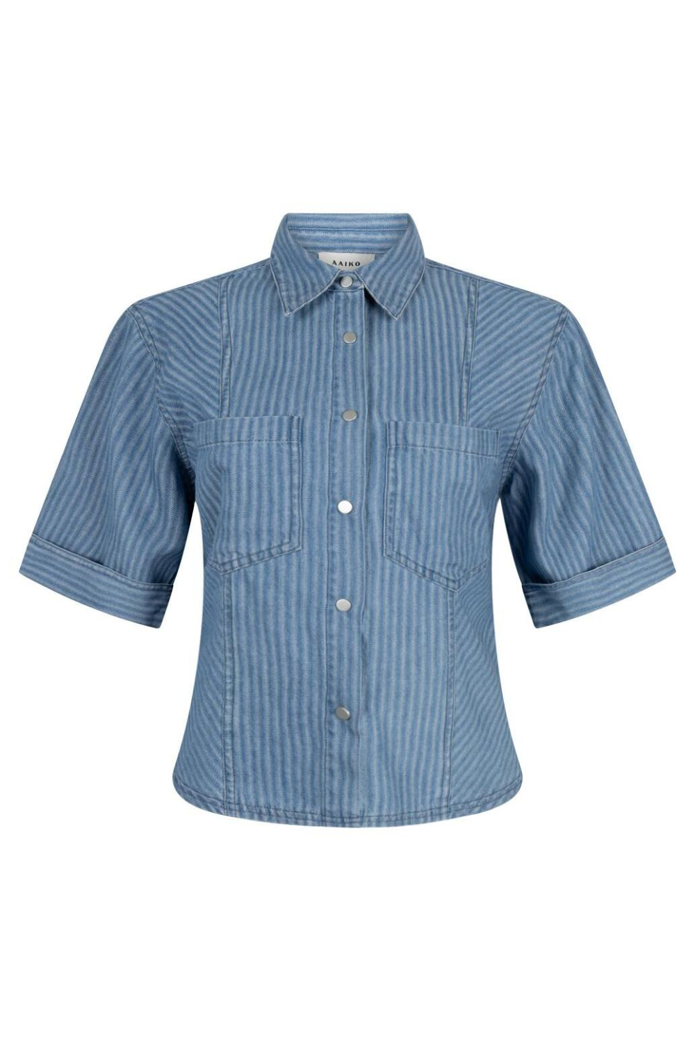 Deze stijlvolle gestreepte denim blouse van Aaiko is een frisse aanvulling voor jouw lente-garderobe. Vervaardigd uit 100% organisch katoen, biedt de blouse een comfortabele en milieuvriendelijke keuze. De klassieke puntkraag en de praktische drukknoopsluiting voegen een subtiele verfijning toe aan dit alledaags kledingstuk. De borstzakken geven een extra accent voor zowel functionaliteit als stijl. Met zijn regular fit en korte mouwen is deze blouse ideaal voor casual en semi-formele gelegenheden. Of je nu een dagje uit gaat of een informele werkdag hebt, deze blouse past moeiteloos bij verschillende stijlen. Combineer met een jeans of een vlotte rok voor een ontspannen uitstraling die toch verzorgd oogt. Dankzij het stonewash-effect en het gestreepte patroon, voeg je eenvoudig een modieus detail aan je outfit toe.