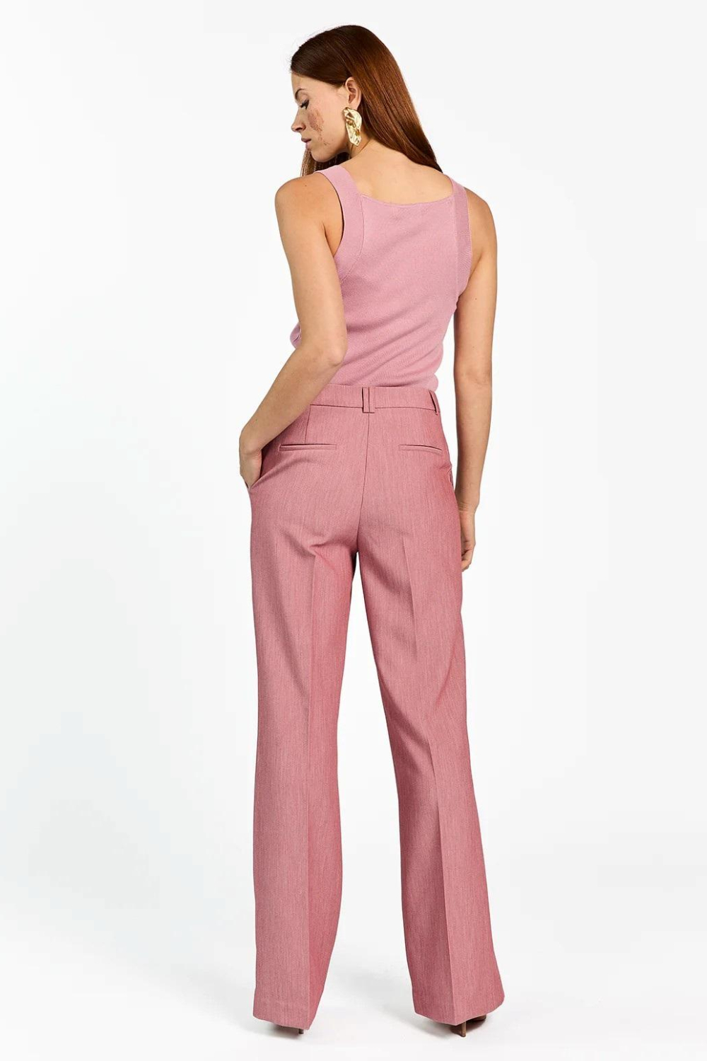 Deze chique flared broek van Aaiko is een verfijnde aanvulling op je lente garderobe. Gemaakt van 79% gerecycled polyester, 17% viscose en 4% elastan, heeft deze broek een comfortabele en duurzame stof. Dankzij de high waist pasvorm komt je figuur prachtig tot zijn recht, terwijl het gemêleerde roze patroon een stijlvolle uitstraling biedt. De knoop- en ritssluiting zorgt voor een klassieke look, perfect voor formele gelegenheden of een dag op kantoor. De broeken zijn voorzien van praktische steekzakken, waardoor ze niet alleen elegant maar ook functioneel zijn. Het flared model en de normale lengte maken ze een veelzijdige keuze, ideaal voor zowel een chique diner als een casual uitje. Combineer ze met een elegante blouse en hakken voor een complete look. Of je nu op zoek bent naar iets voor een speciale gelegenheid of dagelijkse elegantie, deze broeken passen perfect bij elke stijl.