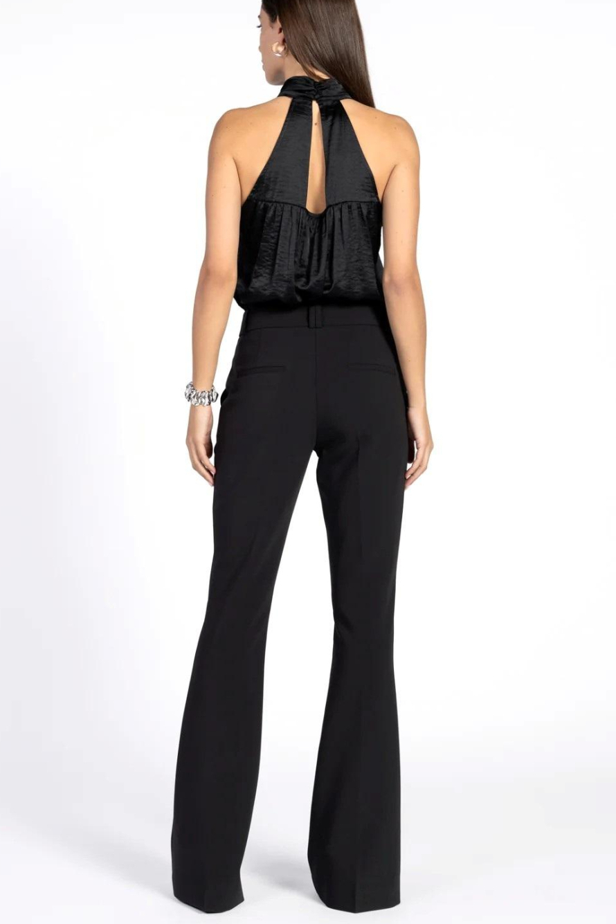 De normale lengte en flared pijpen geven je benen een prachtige lijn en zijn gemakkelijk te combineren met diverse outfits. Of je nu kiest voor een elegante blouse of een casual top, deze broek past zich moeiteloos aan. De zwarte kleur maakt het eenvoudig om te matchen met verschillende kleuren en materialen, zodat je altijd een stijlvolle look kunt creëren. Voeg deze klassieke Aaiko broek toe aan je collectie voor een tijdloze en veelzijdige stijl.