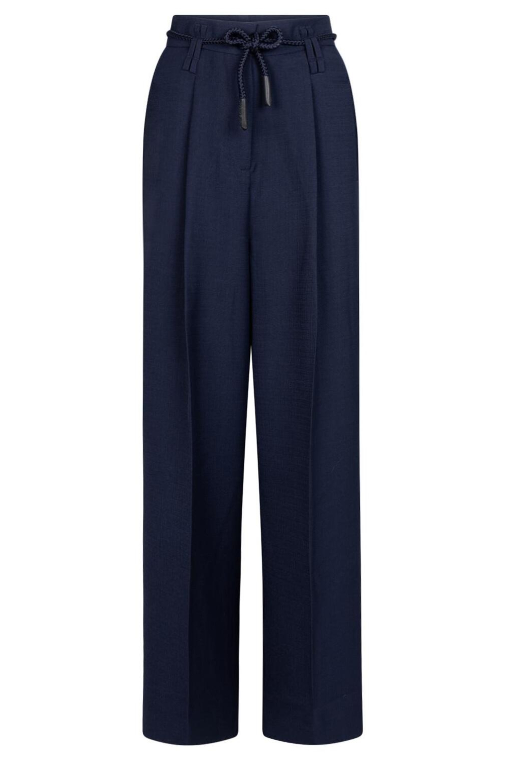 Deze donkerblauwe broek van Aaiko is een stijlvolle keuze voor je garderobe dit herfstseizoen. Met een moderne high-waist en een ontspannen wide-leg pasvorm biedt deze broek zowel comfort als een vleugje elegantie. De knoop- en ritssluiting zorgt ervoor dat je de broek eenvoudig kunt aanpassen voor een perfecte fit. Gemaakt van 100% polyester, voelt de stof zacht aan je huid, waardoor je de hele dag door ultiem comfort ervaart.