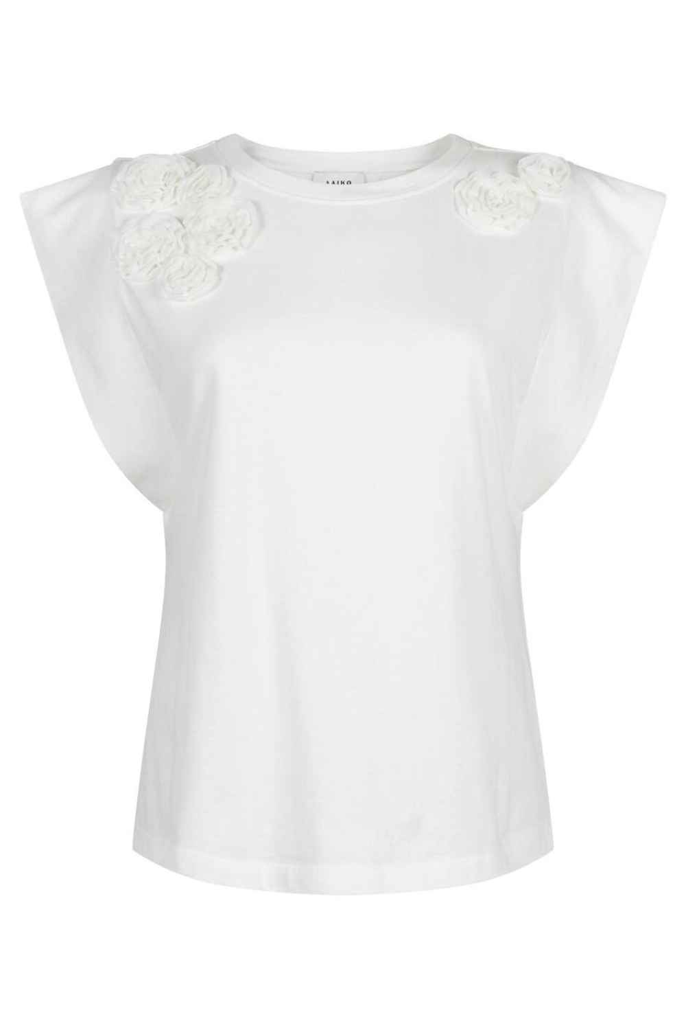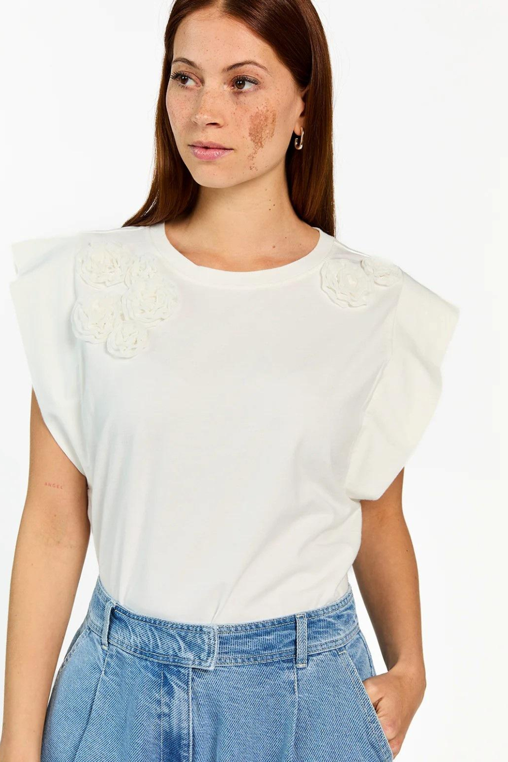 Dit elegante T-shirt van Aaiko, met de speelse naam "Les Blancs", is een perfecte aanvulling voor jouw casual voorjaarsgarderobe. Gemaakt van 100% organisch katoen, biedt het een zachte en ademende ervaring. Het T-shirt heeft een flatterende regular fit en een ronde halslijn, waardoor het comfortabel en veelzijdig is. De subtiele bloemendetails op de schouders zorgen voor een verfijnde uitstraling die niet onopgemerkt blijft. Dit mouwloze ontwerp is ideaal voor zonnige dagen of als basisstuk onder een lichte blazer. De frisse witte kleur en het subtiele bloemenpatroon maken dit T-shirt een uitstekende match voor verschillende gelegenheden. Combineer het met een lichtblauwe denim short voor een casual dagje uit, of style het met een elegante rok voor een nettere look. Of je nu op een terras zit met vrienden of een ontspannen wandeling maakt in het park, dit T-shirt biedt comfort en stijl in één oogopslag.