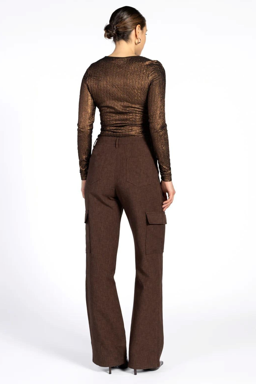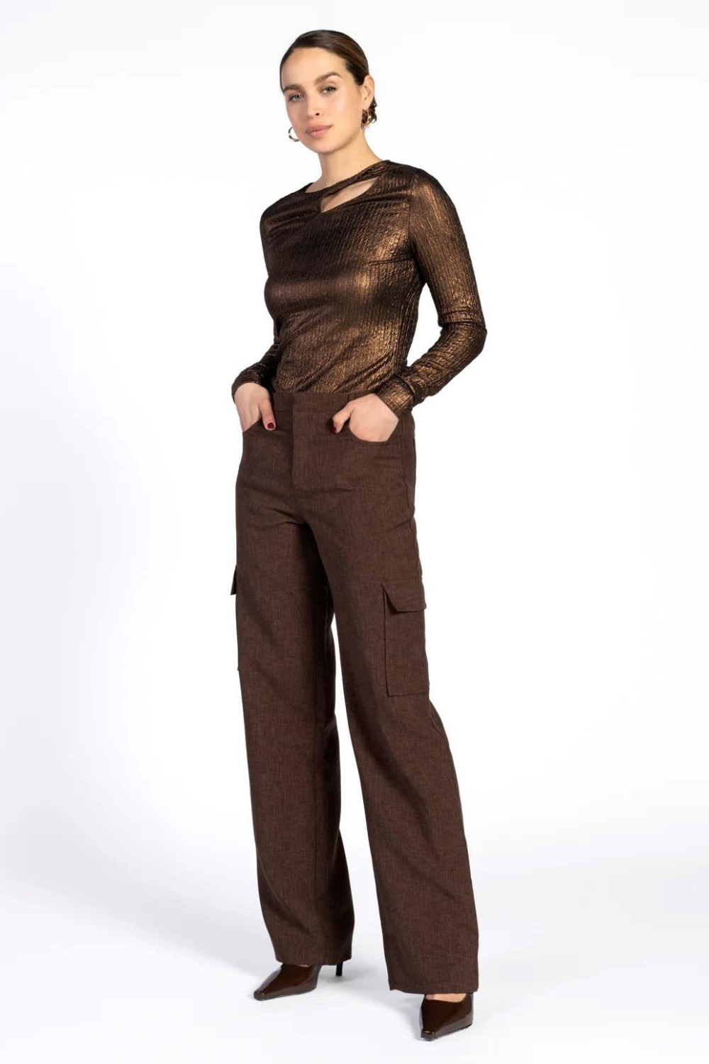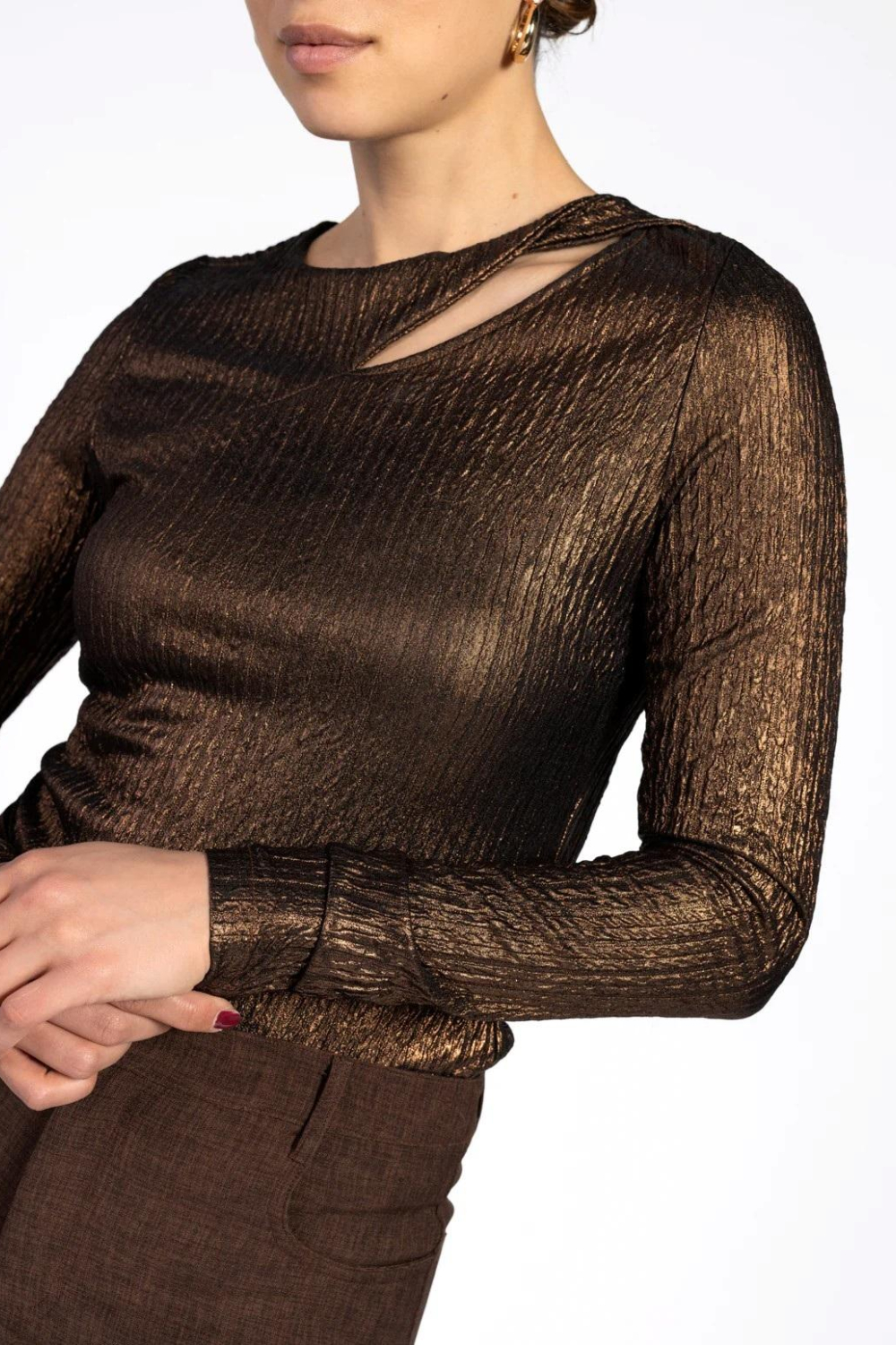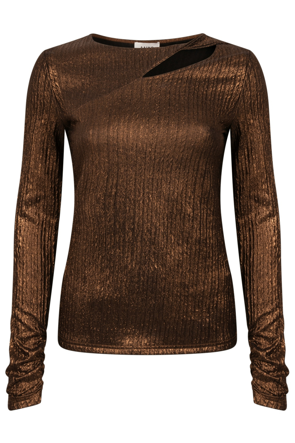Dit chique dames T-shirt van Aaiko is een stijlvolle keuze voor de winter. Gemaakt van een mix van 95% polyester en 5% elastan, zorgt het voor een comfortabele en elastische pasvorm die zich moeiteloos aan je vormen aanpast. Het T-shirt heeft een aantrekkelijke structuur en een warme, glanzende bronsachtige kleur die opvalt. De ronde halslijn en de opvallende cut-out bij de schouder geven een trendy twist aan dit toch al bijzondere kledingstuk, waarmee je gemakkelijk een statement maakt. Perfect om te dragen tijdens een avondje uit of een stijlvolle gelegenheid, dit T-shirt kan zowel met een nette pantalon als met een casual jeans worden gecombineerd. De lange mouwen en normale lengte maken het veelzijdig en geschikt voor verschillende gelegenheden. Of je nu een dag op het werk hebt of jezelf wilt onderscheiden tijdens een speciaal evenement, dit T-shirt van Aaiko biedt precies de juiste mix van comfort en stijlvolle uitstraling.