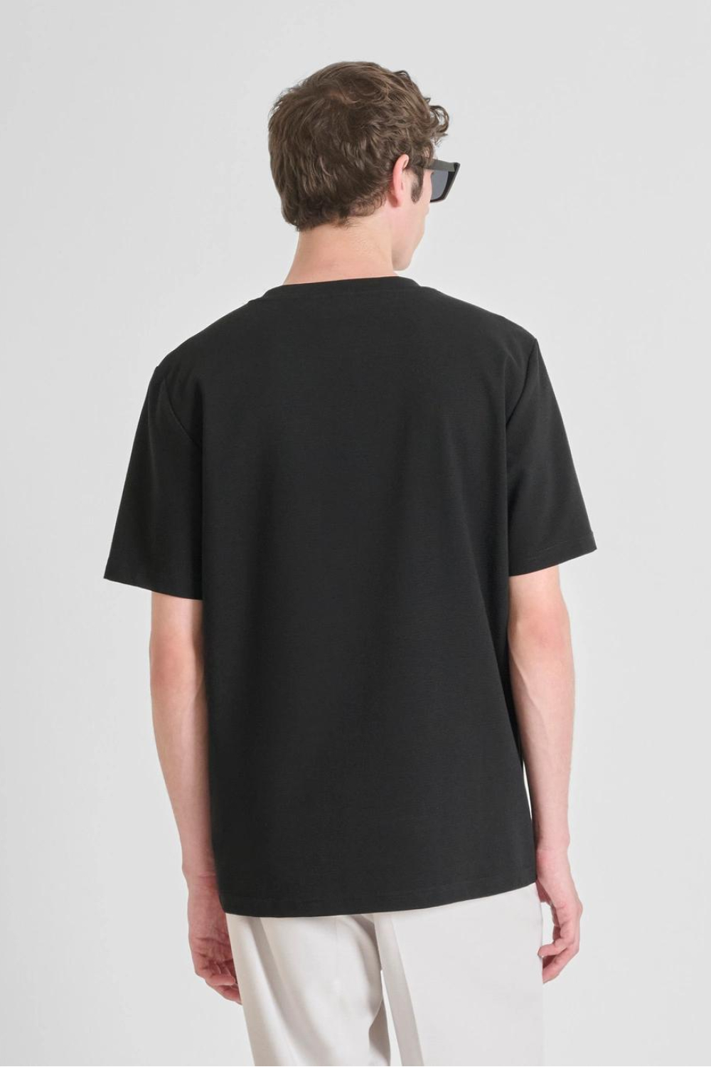 Dit Antony Morato T-shirt in stijlvol zwart is een essentiële toevoeging aan je casual garderobe. Met een relaxed fit biedt het een comfortabele pasvorm die perfect is voor elke dag. De subtiele structuur in de stof voegt visueel interesse toe, terwijl de ronde hals en korte mouwen zorgen voor een tijdloze uitstraling. Het T-shirt is vervaardigd van een hoogwaardige mix van 79% katoen en 21% polyester, wat zorgt voor een aangename draagervaring. Het T-shirt leent zich uitstekend voor uiteenlopende gelegenheden. Draag het tijdens een informele werkdag, een ontspannen weekend, of een avondje uit met vrienden. Dankzij de veelzijdige zwarte kleur laat dit kledingstuk zich moeiteloos combineren met je favoriete jeans of een nette chino. Het subtiele logo op de borst voegt een extra dimensie toe aan het algehele eenvoudige, maar verfijnde design. Een perfecte match voor de herfst, dit T-shirt biedt stijl en comfort in één.