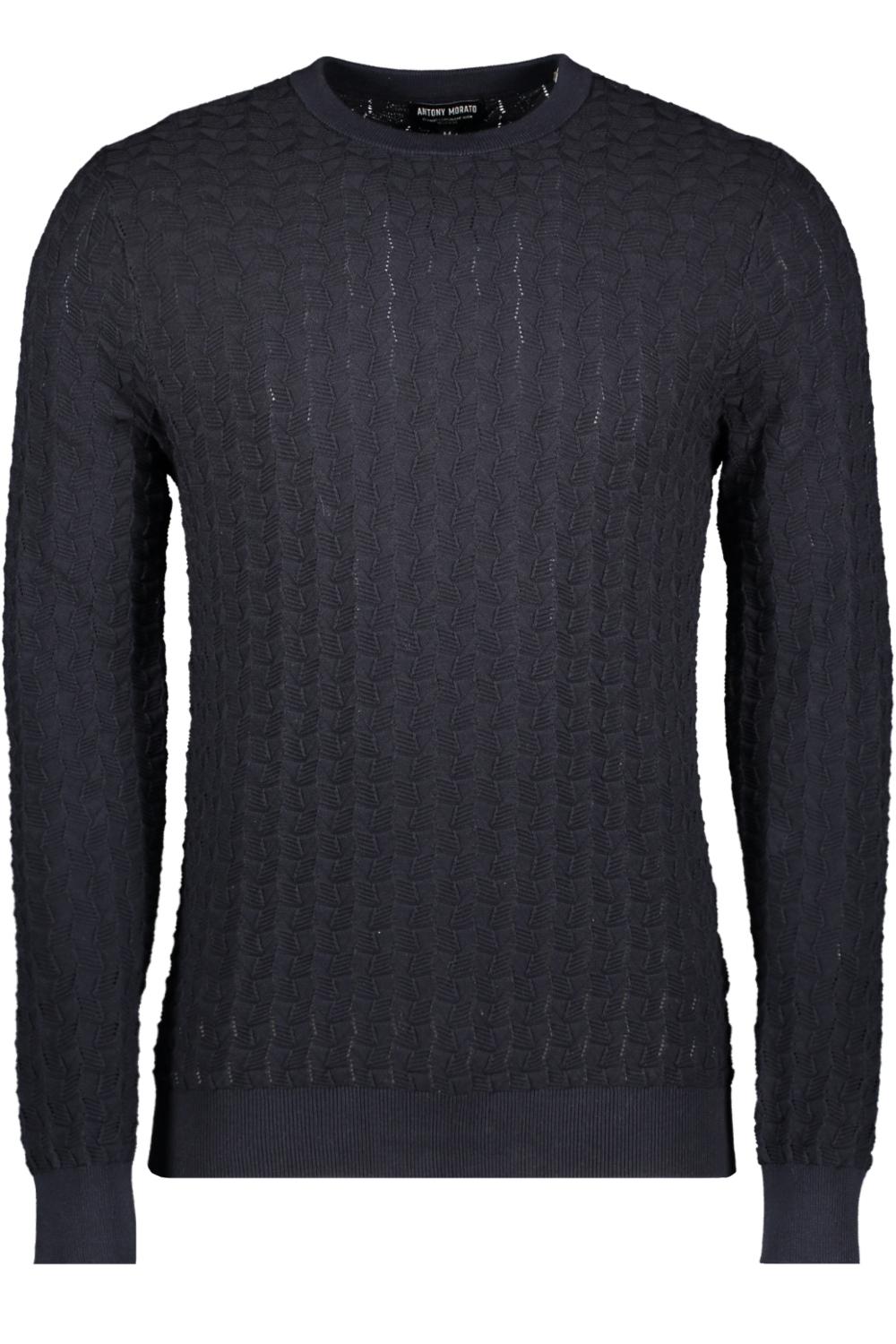 Deze stijlvolle navy trui van Antony Morato is een veelzijdige aanwinst voor je garderobe. Gemaakt van 100% katoen, zorgt deze trui voor een aangename draagervaring, ideaal voor de lente. De trui heeft een slim fit pasvorm die je een moderne en verfijnde look geeft. De ronde hals en het structuurpatroon voegen een subtiele elegantie toe, waardoor je een stijlvolle uitstraling krijgt zonder overdreven details. Met zijn tijdloze ontwerp is deze Antony Morato trui eenvoudig te combineren met zowel casual als formele kledingstukken. Draag hem met een chino voor een eigentijdse zakelijke outfit, of kies voor een jeans voor een ontspannen weekendlook. De lange mouwen en normale lengte maken deze trui perfect voor koelere dagen, terwijl het comfortabele materiaal je genoeg warmte biedt. Of je nu naar kantoor gaat of een avond uit hebt gepland, dit knitwear item past in elke situatie.
