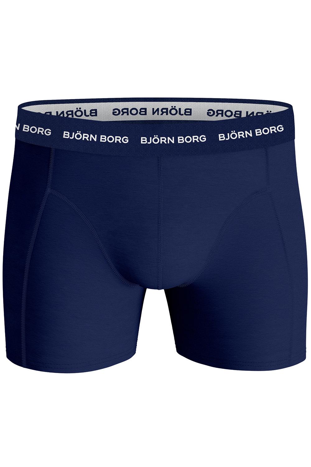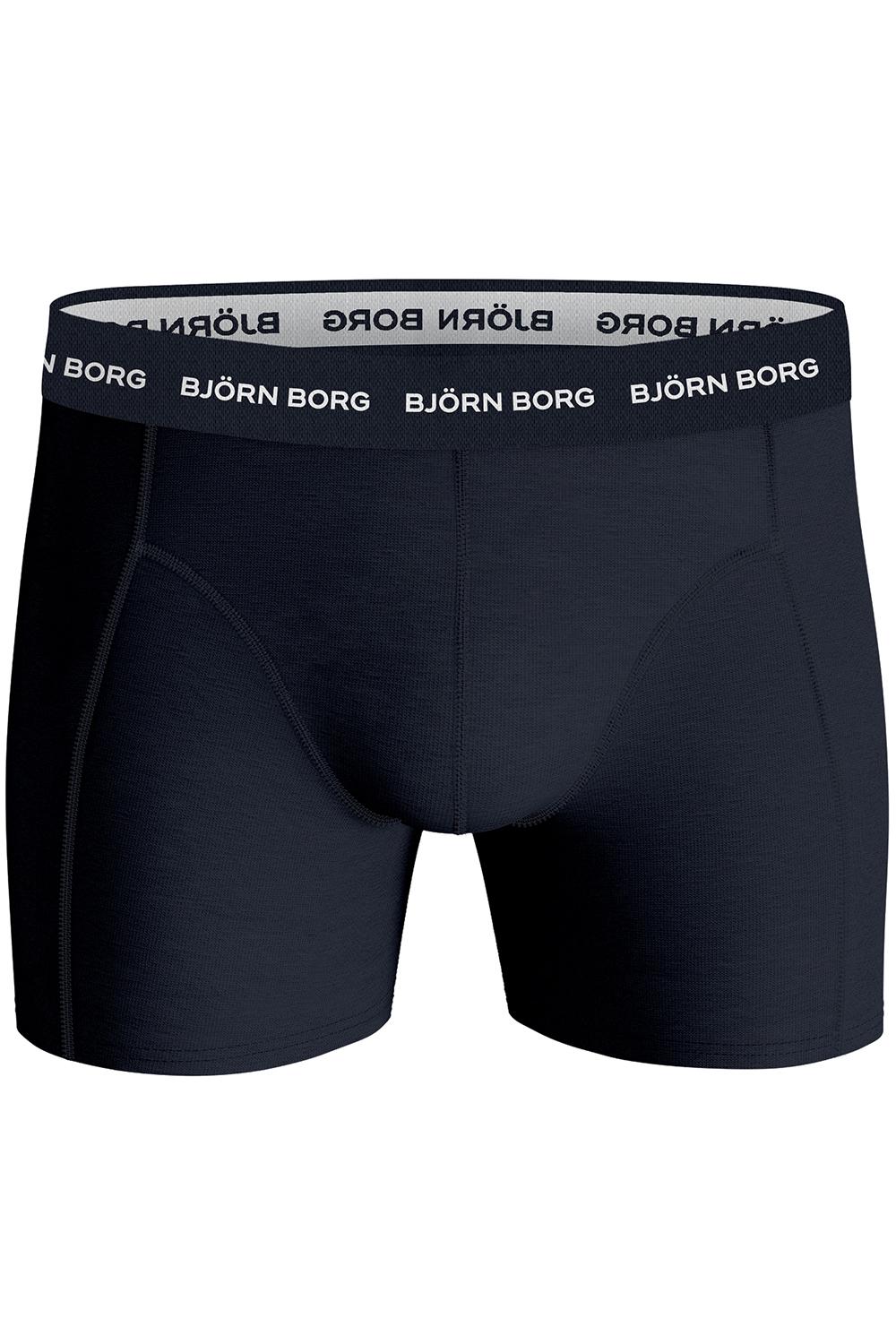 Deze set van drie heren boxershorts van Bjorn Borg, verkrijgbaar in een stijlvolle combinatie van zwart, donkerblauw en blauw, biedt dagelijks comfort en een moderne look. Gemaakt van 95% katoen en 5% elastaan, zorgen ze voor een zachte pasvorm die goed ademend is. De regular fit en de elastische boord met het herkenbare Bjorn Borg logo geven deze shorts een sportieve uitstraling, waardoor ze een perfecte keuze zijn voor de actieve man.