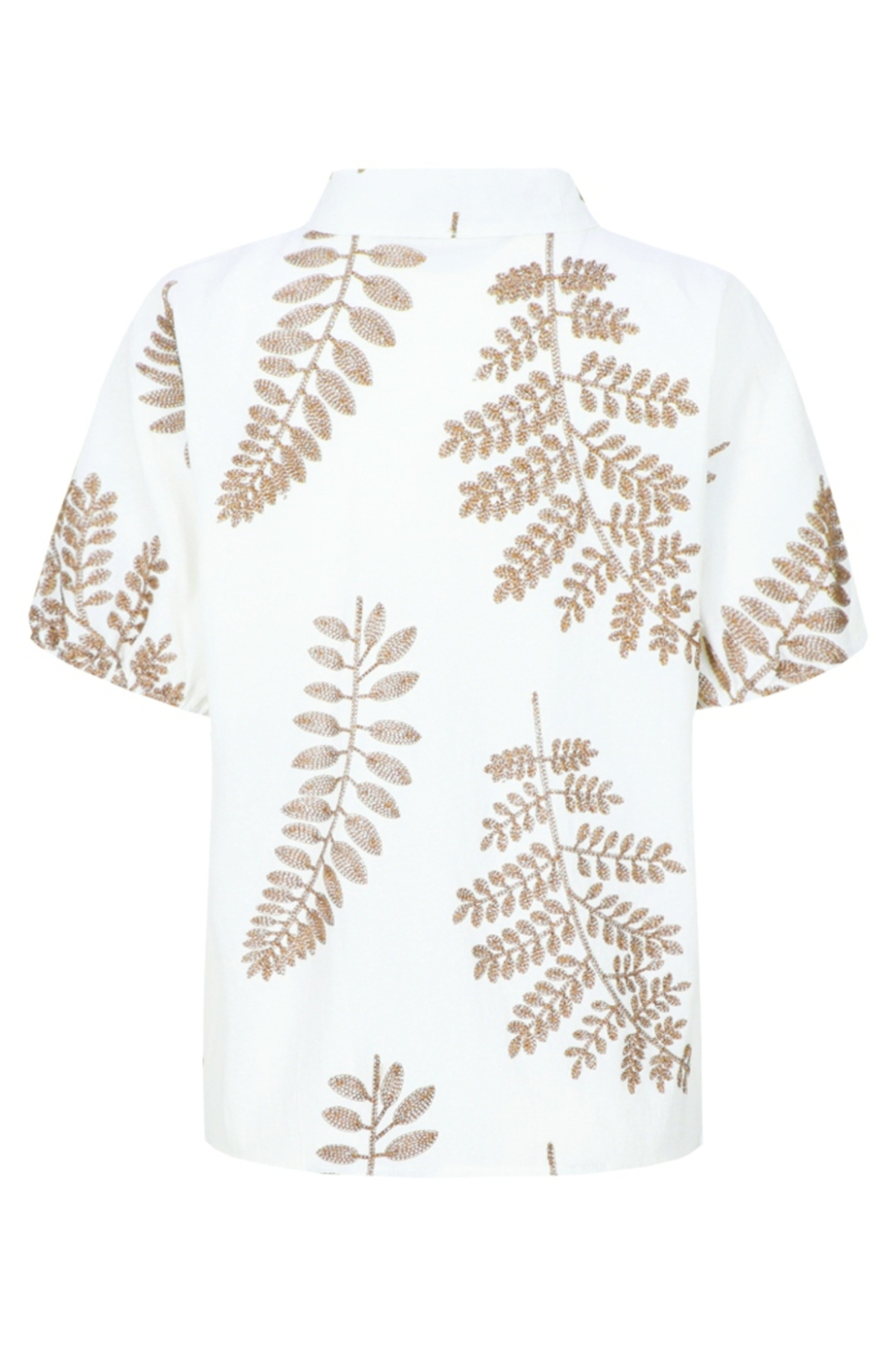 De C&S The Label blouse voor dames is een fraaie toevoeging aan je kledingkast. Deze blouse, uitgevoerd in een subtiele offwhite tint, wordt verfraaid met een opvallend glitterpatroon dat natuurlijk licht vangt en elke look een vleugje elegantie geeft. De blouse heeft een klassieke puntkraag en een comfortabele regular fit, zodat je je door de dag heen ontspannen voelt. Gemaakt van 100% katoen, biedt deze blouse niet alleen stijl, maar ook een luchtige en aangename draagervaring. Ideaal voor verschillende gelegenheden, geeft deze C&S The Label blouse met korte mouwen je outfit een frisse en casual uitstraling, perfect voor de lente. Of je nu een dagje uit plant of met vrienden afspreekt, deze blouse is een veelzijdige keuze die je eenvoudig kunt combineren met zowel een nette broek als een relaxte jeans. De knoopsluiting biedt een extra klassieke touch, waardoor je altijd verzorgd voor de dag komt. Voeg deze blouse toe aan je garderobe en ervaar zelf het comfort en de veelzijdigheid die het biedt.