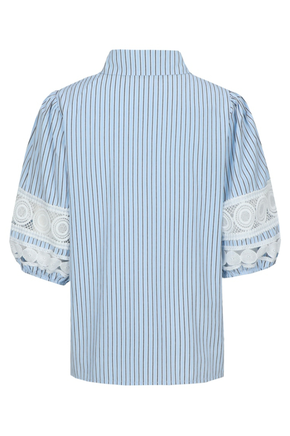 Deze damesblouse van C&S The Label combineert een moderne uitstraling met klassieke details. Gemaakt van een mix van 50% katoen en 50% polyester, biedt deze regular fit blouse de perfecte balans tussen comfort en stijl. Het fijne streepjespatroon vormt de basis van de elegante uitstraling, terwijl de kantdetails op de korte mouwen een verfijnde en unieke touch toevoegen. De puntkraag en knoopsluiting maken het ontwerp compleet, waardoor de blouse zowel casual als stijlvol oogt. Ideaal voor zomerse dagen, biedt deze blouse veelzijdigheid in styling. Combineer hem met een witte broek voor een frisse, casual look, of draag hem met een nette rok voor een meer formele setting. Of je nu een wandeling langs het strand maakt of een brunch hebt met vrienden, deze C&S The Label blouse is een uitstekende keuze voor diverse gelegenheden. De luchtige stof en korte mouwen zorgen ervoor dat je het de hele dag comfortabel hebt, zonder in te boeten op stijl.