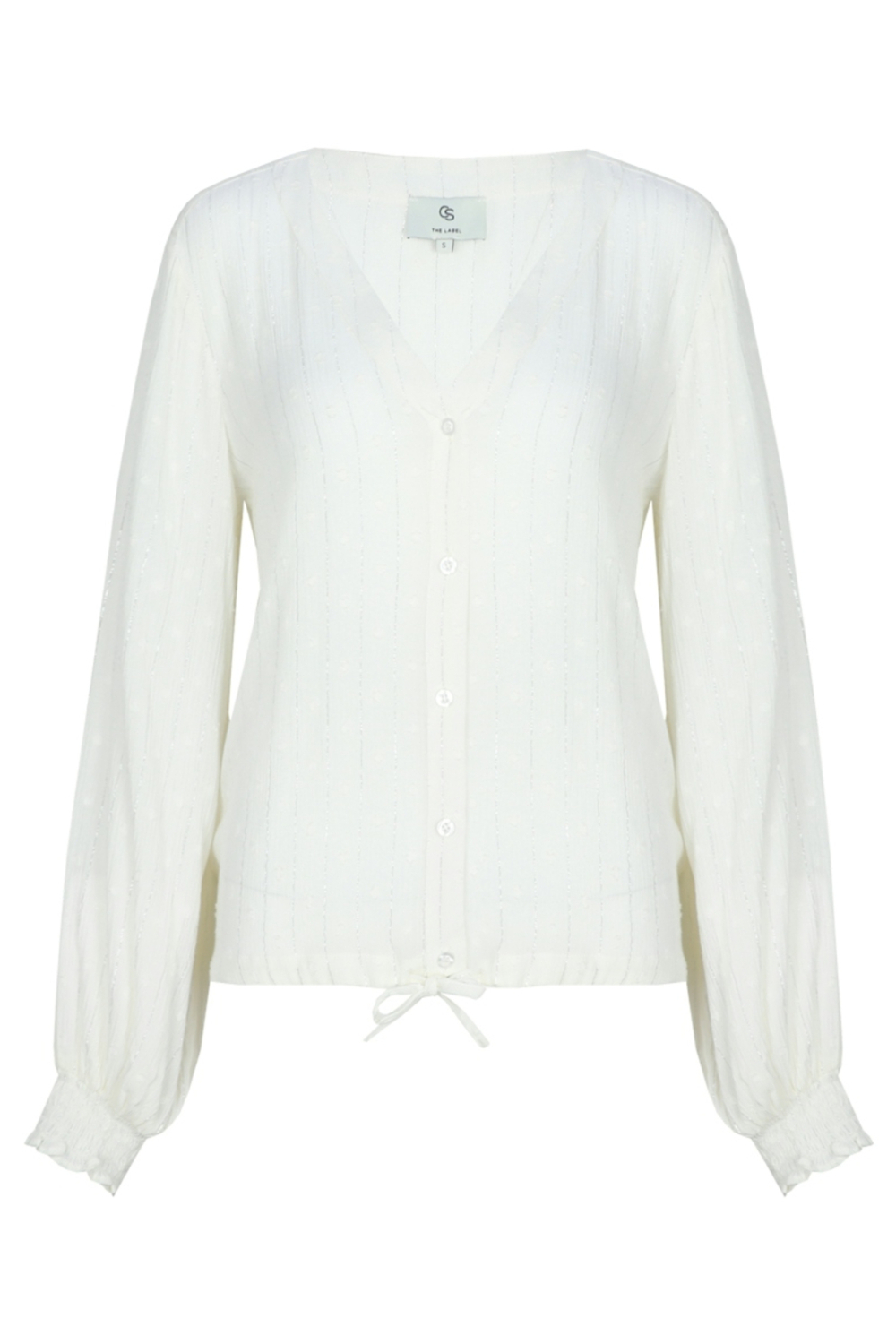 Deze offwhite damesblouse van C&S The Label combineert moeiteloos stijl met comfort. Met een regular fit en een subtiel glitterpatroon, biedt deze blouse een speelse twist aan een klassiek ontwerp. De V-hals en knoopsluiting geven een elegante uitstraling, terwijl de lange mouwen zorgen voor een tijdloze look. Deze blouse is perfect voor zomerse dagen dankzij de luchtige stof en het normale model, geschikt voor verschillende gelegenheden. De blouse is ideaal voor zowel casual als iets formelere settings. Draag hem overdag met een lichte jeans voor een relaxte outfit, of combineer hem met een nette rok voor een avondje uit. Dankzij de veelzijdige offwhite kleur kun je eenvoudig mixen en matchen met andere kledingstukken uit je garderobe. Niet alleen functioneel, maar ook een stijlvolle keuze voor de modebewuste vrouw.