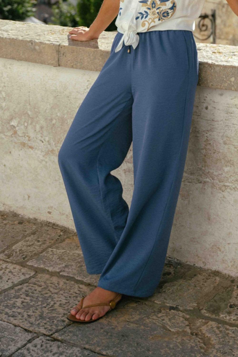 Deze casual blauwe broek van C&S The Label is een stijlvolle keuze voor de zomergarderobe. Met zijn wide leg pasvorm en regular waist biedt hij niet alleen comfort, maar ook een eigentijdse look. De elastische boord zorgt voor een moeiteloze en flexibele pasvorm, ideaal voor dagelijks gebruik. Door de subtiele textuur en de steekzakken, voegt deze broek een vleugje nonchalante elegantie toe aan elke outfit. De blauwe kleur maakt deze broek bijzonder veelzijdig, perfect voor zowel ontspannen als iets gekledere gelegenheden. Of je nu een dagje naar het strand gaat of een casual lunchafspraak hebt, deze broek laat zich makkelijk combineren met een lichte blouse of relaxed T-shirt. De normale lengte maakt hem draagbaar met zowel sandalen als sneakers. Een ideale aanvulling voor iedereen die houdt van comfort zonder concessies te doen aan stijl.