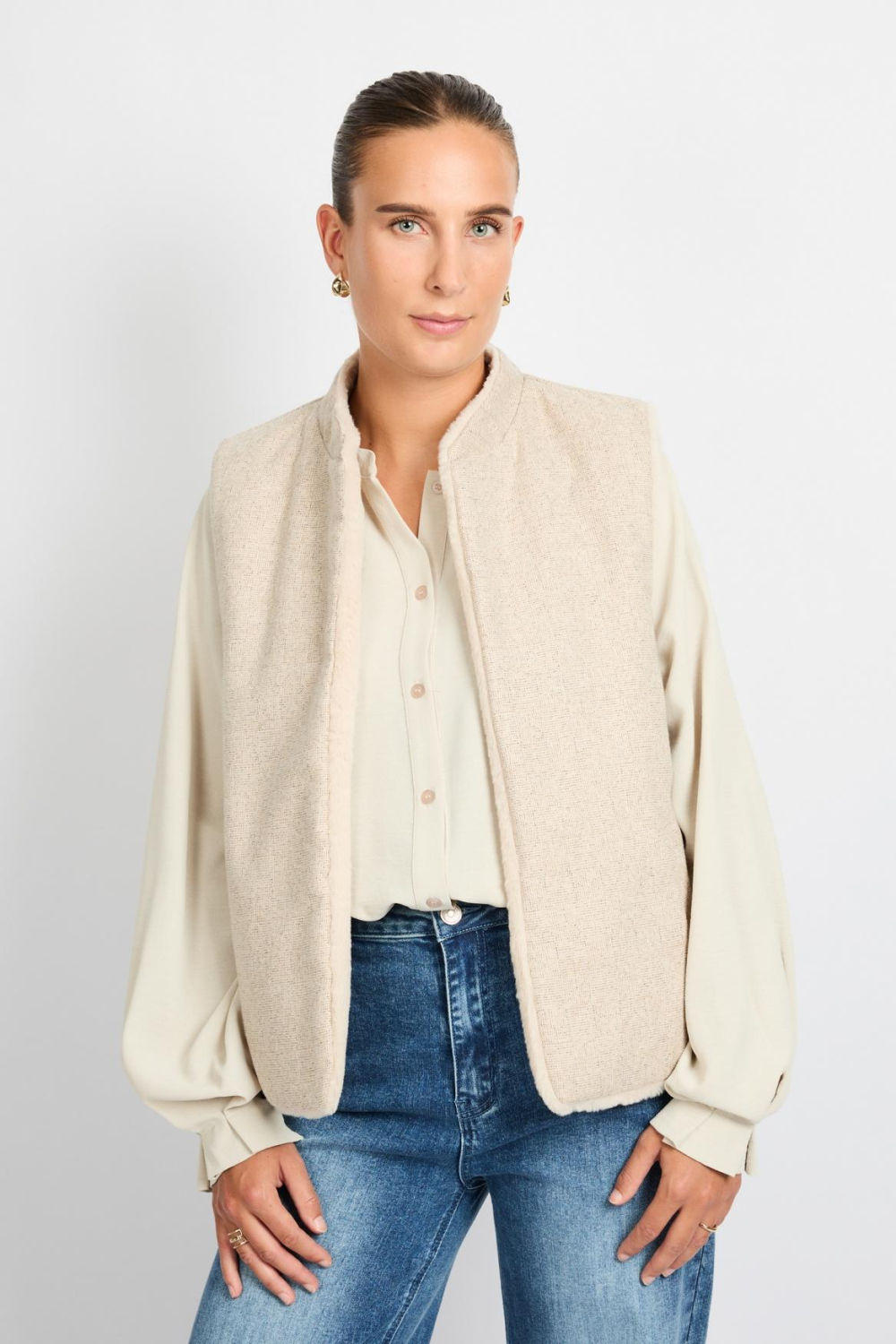Dit casual gilet van C&S The Label in de kleur 014 SAND is een subtiele toevoeging voor je wintergarderobe. Gemaakt voor dames met een regular pasvorm, straalt het comfort en stijl uit. De gemêleerde structuur en de ronde hals geven dit kledingstuk een tijdloze uitstraling. Zonder sluiting biedt het gilet een nonchalante look, ideaal voor een ontspannen omgeving. Of je nu een dagje uit plant of gewoon een comfortabele laag zoekt voor thuis, dit gilet kan overal bij gedragen worden. Het gilet heeft handige steekzakken voor extra functionaliteit en is volledig gevoerd met polyester, wat zorgt voor extra warmte tijdens koude dagen. De mouwloze constructie maakt het eenvoudig om verschillende lagen eronder te dragen, waardoor het perfect is voor de winterse laagjeslook. Combineer het met een blouse en jeans voor een casual en toch verzorgde uitstraling. Of je nu een wandeling maakt of een informele bijeenkomst bijwoont, dit gilet past bij elke casual gelegenheid.