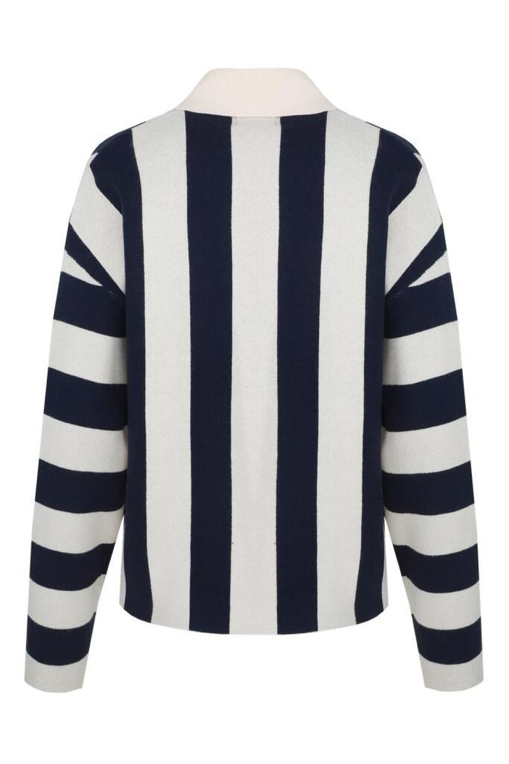 Dit stijlvolle vest van C&S The Label is een perfecte toevoeging aan je herfstgarderobe. Het vest heeft een opvallend streeppatroon in marineblauw en wit, wat direct een moderne look geeft. Met een V-hals en een knoopsluiting biedt dit vest een klassieke uitstraling, terwijl de klepzakken vooraan zorgen voor een speelse touch. De lange mouwen en de normale lengte maken het tot een veelzijdig kledingstuk dat geschikt is voor verschillende gelegenheden. Gemaakt van een blend van viscose, polyester en polyamide, voelt dit vest zacht aan en biedt het comfortabele stretch. Of je nu een dag op kantoor hebt of een casual uitje plant, dit vest past perfect bij zowel formele als informele settings. Combineer het met een basic top en een donkere jeans voor een chique, maar toch ontspannen look. Dit C&S The Label vest is een ideale keuze voor wie houdt van een stijlvolle en comfortabele outfit in het herfstseizoen.