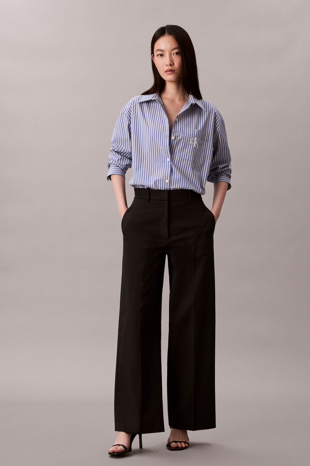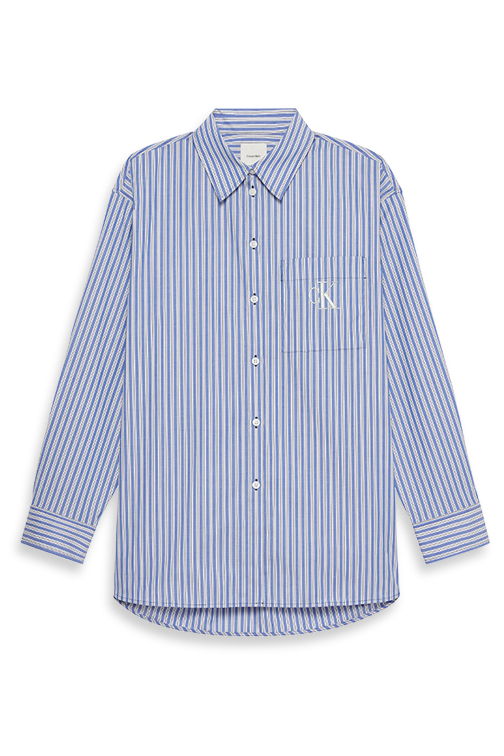 Deze casual damesblouse van Calvin Klein laat zich kenmerken door een tijdloze blauwe en witte strepencombinatie. Dankzij de relaxed fit biedt de blouse een comfortabele pasvorm die je gedurende de dag optimaal bewegingsvrijheid geeft. De borstzakken zijn subtiel afgewerkt met het iconische CK-merklogo, wat een stijlvolle touch toevoegt aan het geheel. Met de klassieke puntkraag en knoopsluiting creëer je eenvoudig een nette maar ontspannen look, perfect voor zowel informele als semi-formele gelegenheden. De blouse is vervaardigd van een hoogwaardige mix van 95% katoen en 5% elastan, wat garant staat voor zowel comfort als duurzaamheid. Dit maakt de blouse ideaal voor het herfstseizoen, als je op zoek bent naar een extra laagje zonder in te boeten op stijl. Draag deze opvallende Calvin Klein blouse met je favoriete pantalon voor een nette verschijning op kantoor of combineer met jeans voor een meer casual uitstraling. De lange mouwen dragen bij aan zijn veelzijdigheid, waardoor het makkelijk is te stylen voor verschillende gelegenheden.