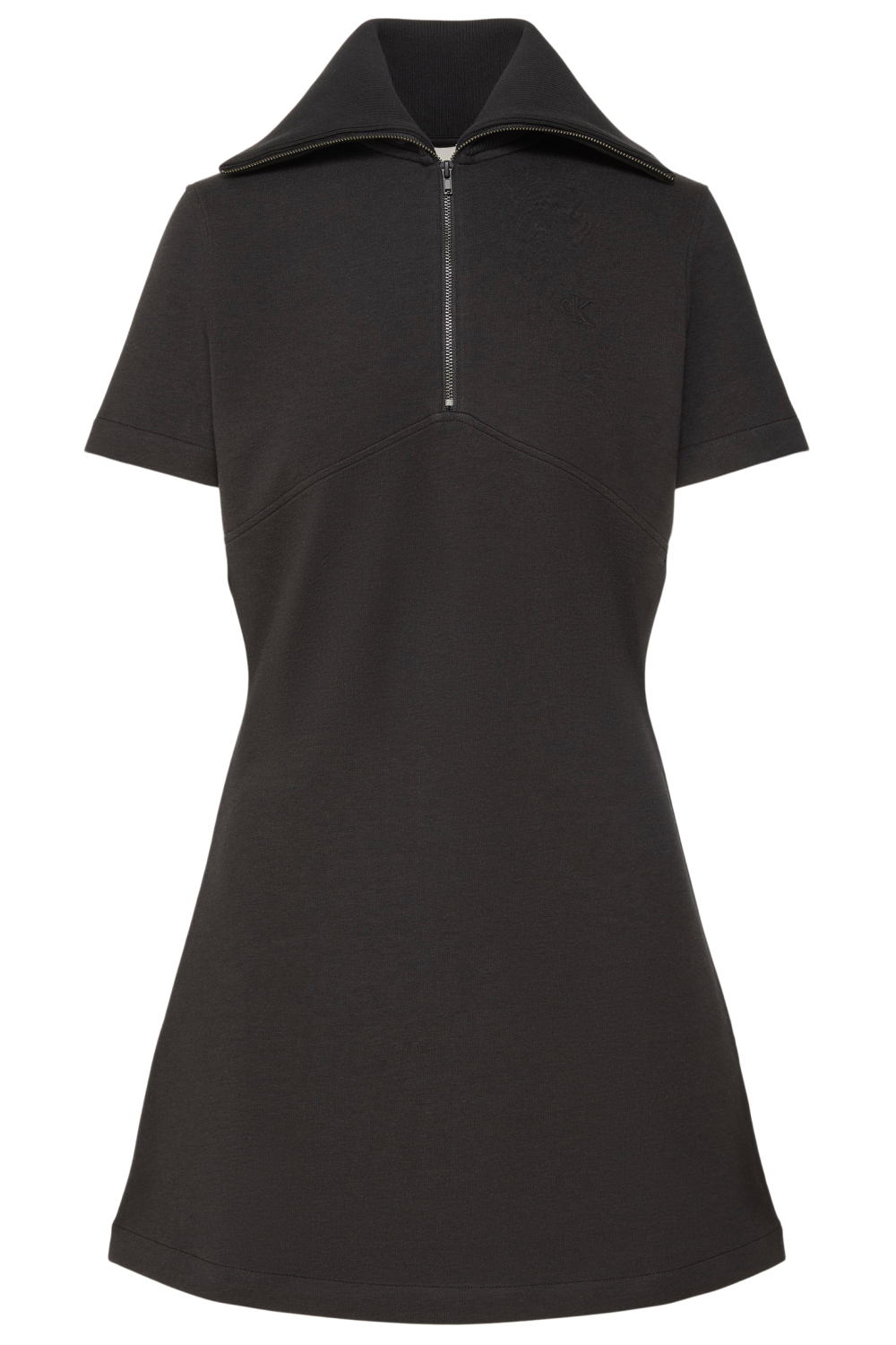 Deze elegante zwarte jurk van Calvin Klein is jouw nieuwe favoriet voor casual looks dit seizoen. De jurk heeft een regular fit en is voorzien van een stijlvolle puntsluiting bij de hals, wat een subtiele twist geeft aan het klassieke ontwerp. Uitgevoerd in een kort model en met korte mouwen, is deze jurk een ideale keuze voor de lente. De zwarte kleur biedt een tijdloze basis die je kunt combineren met diverse accessoires voor verschillende gelegenheden. Calvin Klein staat bekend om zijn minimalistische en verfijnde ontwerpen, en deze jurk vormt daarop geen uitzondering. Met de handige ritssluiting kun je de jurk gemakkelijk aan- en uittrekken, wat extra comfort biedt tijdens het dragen. Perfect voor een dagje uit of een ontspannen avond met vrienden. Combineer deze veelzijdige jurk eenvoudig met sandalen voor een casual look, of kies voor hakken om de outfit net wat meer flair te geven. Of je nu een brunch hebt of een lunch met collega's, deze jurk past altijd. Meer informatie: De totale lengte is 78 cm bij maat S.