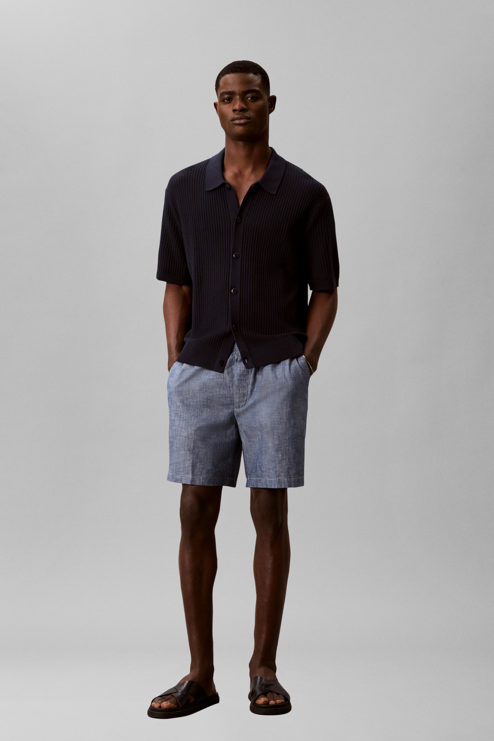 Deze casual heren korte broek van Calvin Klein is een veelzijdige toevoeging aan je lente garderobe. Gemaakt van 100% katoen, biedt de broek comfort en een luchtige fit die ideaal is voor de warmere dagen. De lichte, blauwe tint van de stof geeft de broek een moderne uitstraling die makkelijk te combineren is. Met een regular fit pasvorm en een elastische boord rond de taille, past hij zich moeiteloos aan aan je lichaamsvorm, wat zorgt voor extra draagcomfort. Dankzij de handige steekzakken kan je gemakkelijk je essentials kwijt tijdens een dagje uit of een informele bijeenkomst. Of je nu een wandeling langs het strand maakt of een ontspannen dag met vrienden doorbrengt, deze broek is de perfecte match. De subtiele branding op de achterkant voegt een stijlvol detail toe, zonder al te opvallend te zijn. Combineer met een eenvoudige polo of een casual T-shirt voor een moeiteloos gestroomlijnde look.