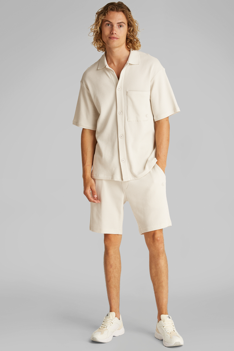 Dit casual overhemd van Calvin Klein is een veelzijdige aanvulling op jouw voorjaarsgarderobe. Het overhemd is gemaakt van een hoogwaardig mix van 50% katoen en 50% polyester, wat zorgt voor een fijne balans tussen comfort en duurzaamheid. De lichte structuur in de stof geeft het overhemd een verfijnde uitstraling, terwijl de korte mouwen en reguliere pasvorm zorgen voor een ontspannen look. De rib kraag en subtiele borstzak geven het ontwerp extra karakter, zonder in te leveren op functionaliteit. Met zijn neutrale kleur "Silver Birch" is dit overhemd een perfecte match voor een ontspannen dagje uit, een informele werkdag of een etentje op het terras. Combineer het met een casual short of lichte jeans voor een moeiteloze, zomerse look. Dankzij de subtiele merkdetails blijf je stijlvol, zonder dat het overhemd zijn veelzijdigheid verliest. Of je nu kiest voor een ontspannen weekend of een spontane avond met vrienden, dit Calvin Klein overhemd is een betrouwbare keuze die altijd goed van pas komt.