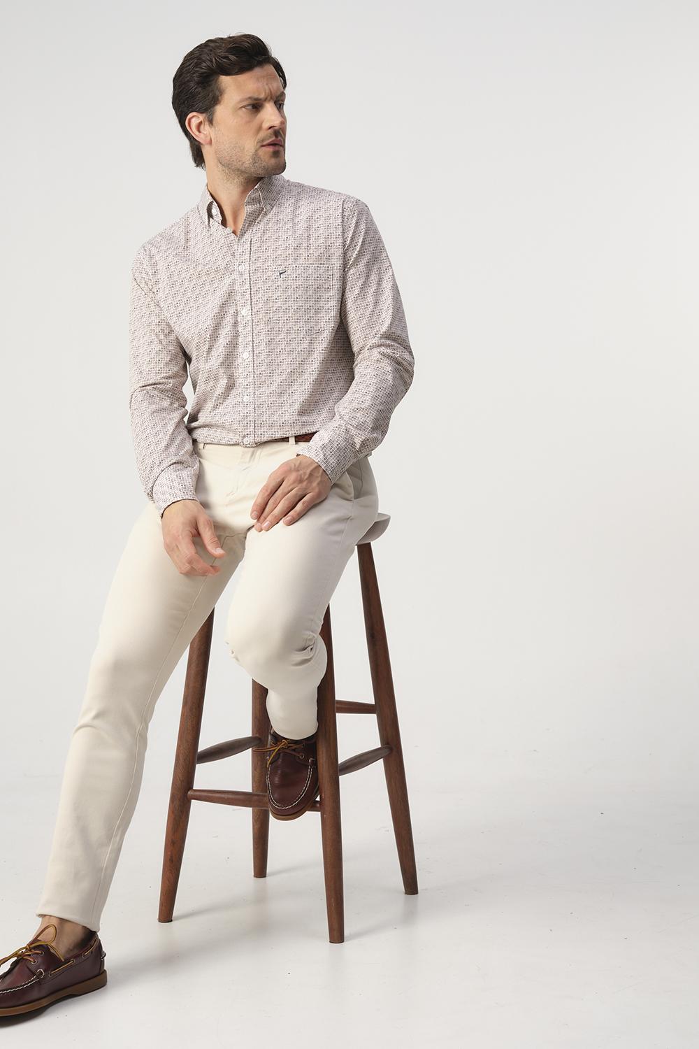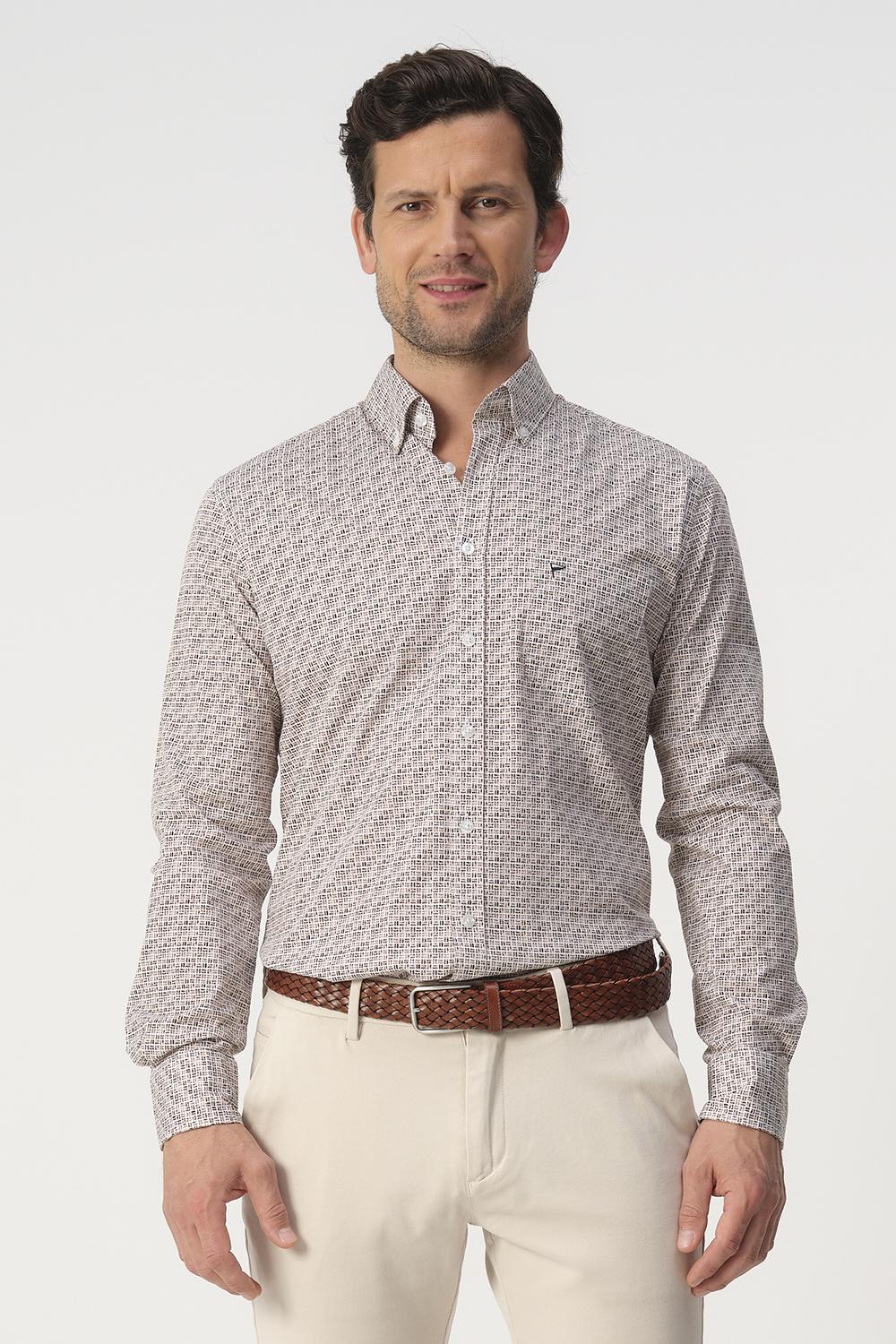 Dit Campbell overhemd voor heren is een stijlvolle keuze voor je garderobe. Met zijn opvallende grafische patroon en button-down kraag biedt het een casual look die perfect is voor de lente. De regular fit zorgt voor een comfortabele pasvorm, terwijl de borstzakken praktische details toevoegen. Gemaakt van 100% katoen, voelt dit overhemd zacht aan op de huid en draagt het prettig gedurende de dag. Het shirt heeft een normale lengte en lange mouwen, waardoor het geschikt is voor verschillende gelegenheden, van een informele werkomgeving tot een weekenduitje. De lichte kleuren van het overhemd maken het gemakkelijk te combineren met zowel jeans als chino's. Dankzij de knoopsluiting kun je het eenvoudig aan- en uittrekken, terwijl het unieke patroon je outfit een moderne twist geeft. Voeg dit veelzijdige Campbell overhemd toe aan je outfit voor een moeiteloze, stijlvolle uitstraling.