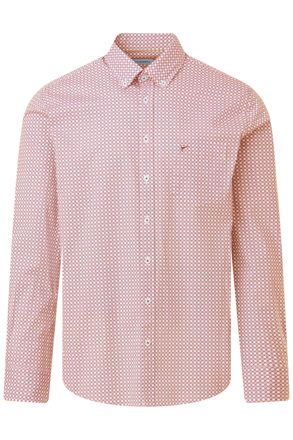 Dit Campbell overhemd met grafisch patroon en button-down kraag brengt een eigentijdse twist naar je garderobe. Gemaakt van 100% katoen, biedt het een luchtige en comfortabele pasvorm die je het hele seizoen kunt dragen. De regular fit zorgt voor een ontspannen silhouet, terwijl de subtiele borstzak een functioneel detail toevoegt. De knoopsluiting maakt het eenvoudig om een casual of meer verzorgde look te creëren. Met zijn speelse patroon is dit overhemd ideaal voor informele gelegenheden, zoals een dagje uit of een ontspannen etentje. Combineer het met een lichte jeans voor een frisse lente-look, of draag het onder een trui voor extra warmte op koelere dagen. De lange mouwen en normale lengte maken het veelzijdig genoeg voor zowel binnen als buiten kantooruren. Met dit Campbell overhemd voeg je moeiteloos een stijlvolle twist toe aan elke outfit.