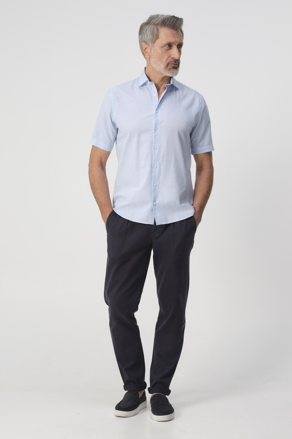 Dit casual overhemd van Campbell in de kleur Chambray Blue biedt een frisse en ontspannen stijl voor zomerse dagen. Gemaakt van 100% katoen, voelt het overhemd zacht en comfortabel aan op de huid. De regular fit zorgt voor voldoende bewegingsvrijheid, terwijl de gemeleerde textuur een subtiele diepte aan de stof toevoegt. De korte mouwen en de klassieke puntkraag maken het ontwerp compleet, en de knoopsluiting geeft het overhemd een nette afwerking. Dit Campbell overhemd is perfect voor een ontspannen weekend of een informele bijeenkomst. Dankzij zijn eenvoudige maar elegante uitstraling kan het gemakkelijk gecombineerd worden met verschillende broeken, van jeans tot chino's. Of je nu een dagje gaat citytrippen of een barbecue bijwoont, dit overhemd is een betrouwbare keuze. Het normale model biedt een tijdloze look, waardoor het een veelzijdige aanvulling is op je zomergarderobe.