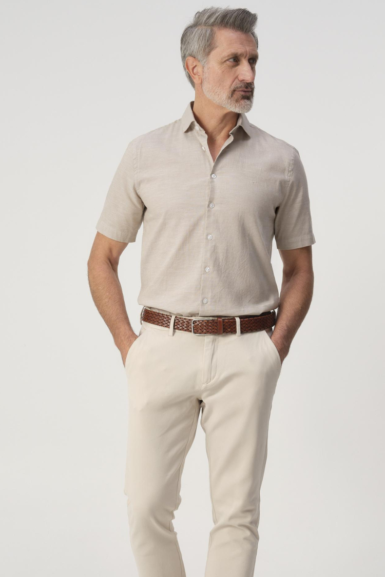 Dit casual gemêleerde overhemd van Campbell biedt een tijdloze aanvulling op je zomergarderobe. Gemaakt van 100% katoen, zorgt het voor een ademende en comfortabele pasvorm, ideaal voor warme dagen. De regular fit en korte mouwen maken het een perfecte keuze voor informele gelegenheden, terwijl de klassieke puntkraag en knoopsluiting een subtiele verfijning toevoegen aan je look. Het Campbell overhemd is veelzijdig inzetbaar en past bij diverse kledingstijlen. De lichte kleur en gemêleerde textuur geven het een moderne en toegankelijke uitstraling. Combineer het met een lichte chino of casual broek voor een ontspannen en stijlvolle outfit. Ideaal voor een zomerse brunch, een dagje uit met vrienden of zelfs een informele kantooromgeving. Met zijn normale lengte en afwezigheid van zakken behoudt het een gestroomlijnd en verzorgd silhouet.