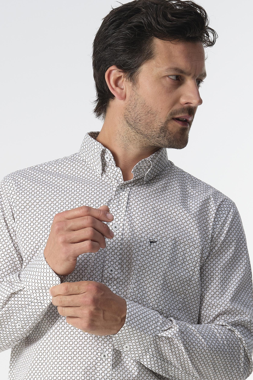 Dit grafische herenoverhemd van Campbell is een stijlvolle keuze voor jouw wintergarderobe. Met een regular fit en een subtiel wit patroon biedt het overhemd een tijdloze look. Gemaakt van 100% katoen, voelt het comfortabel en luchtig aan. De klassieke puntkraag en de knoopsluiting geven het een verfijnde uitstraling. Het ontwerp is voorzien van praktische borstzakken, wat zowel stijl als functie toevoegt aan het geheel. Dit Campbell overhemd met lange mouwen is ideaal voor zowel casual als formele settings. Combineer het met een nette chino voor een verfijnde look op kantoor, of draag het met een jeans voor een ontspannen avondje uit. De normale lengte maakt het gemakkelijk te dragen onder een trui of colbert, perfect voor de winterse seizoenen. Of je nu een zakelijke afspraak hebt of een diner met vrienden, dit overhemd biedt een veelzijdige en elegante optie.
