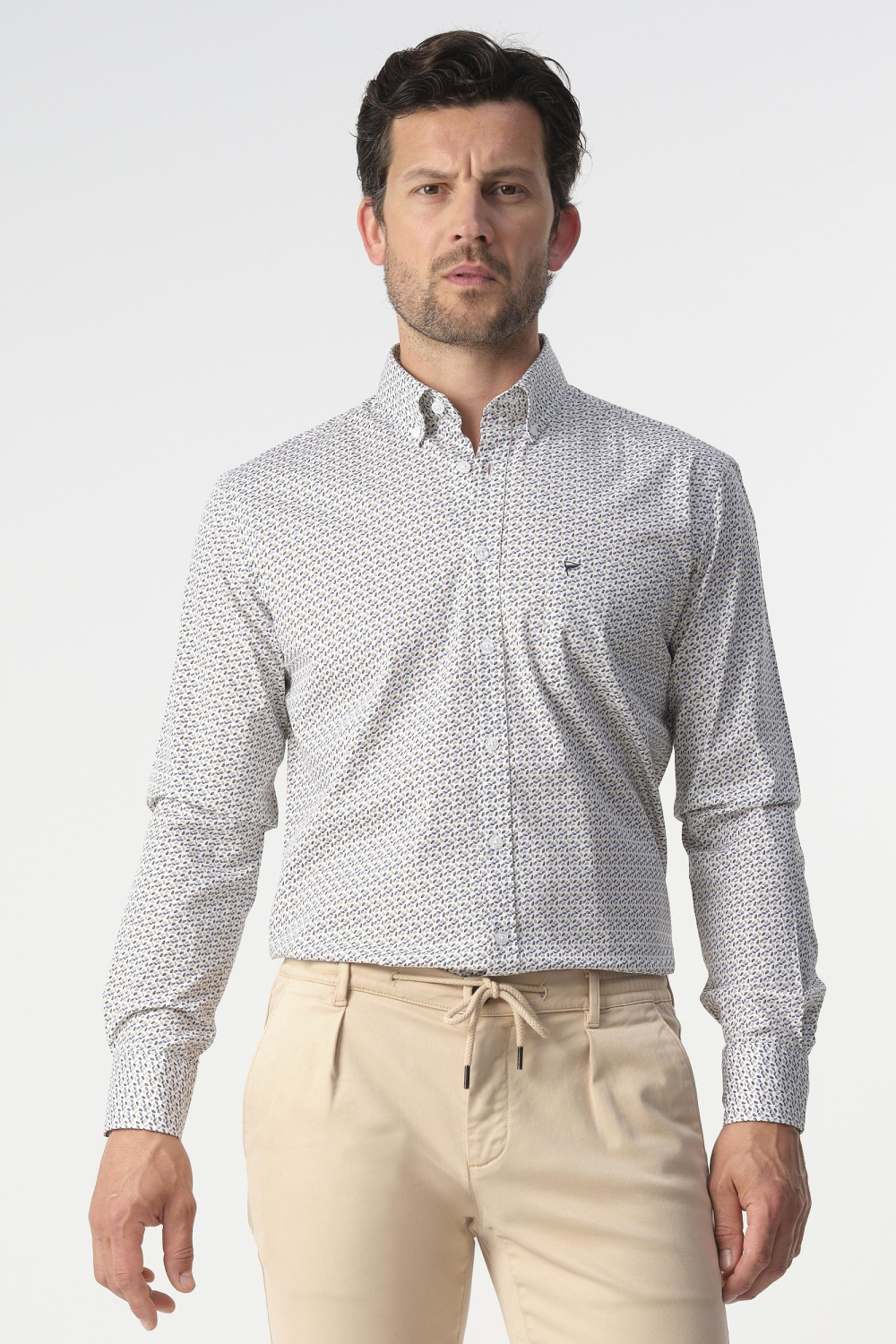 Dit Campbell overhemd in een opvallend safari dessin is een stijlvolle toevoeging aan je wintergarderobe. Met zijn grafische patroon trekt het op subtiele wijze de aandacht, perfect voor zowel informele als zakelijke gelegenheden. De regular fit zorgt voor een comfortabele pasvorm, terwijl de button-down kraag en knoopsluiting een klassieke uitstraling geven. Dit overhemd is vervaardigd van 100% katoen, waardoor het zacht en vriendelijk aanvoelt op de huid. Het overhemd heeft handige borstzakken die niet alleen functioneel zijn, maar ook een extra element van stijl toevoegen. Combineer dit Campbell overhemd met een nette pantalon voor een verfijnde look op kantoor, of draag het met een casual jeans voor een ontspannen weekendoutfit. De lange mouwen en de normale lengte maken het ideaal voor de koudere maanden. Dit veelzijdige kledingstuk biedt je tal van mogelijkheden, of je nu naar een vergadering gaat of een dagje uit plant.