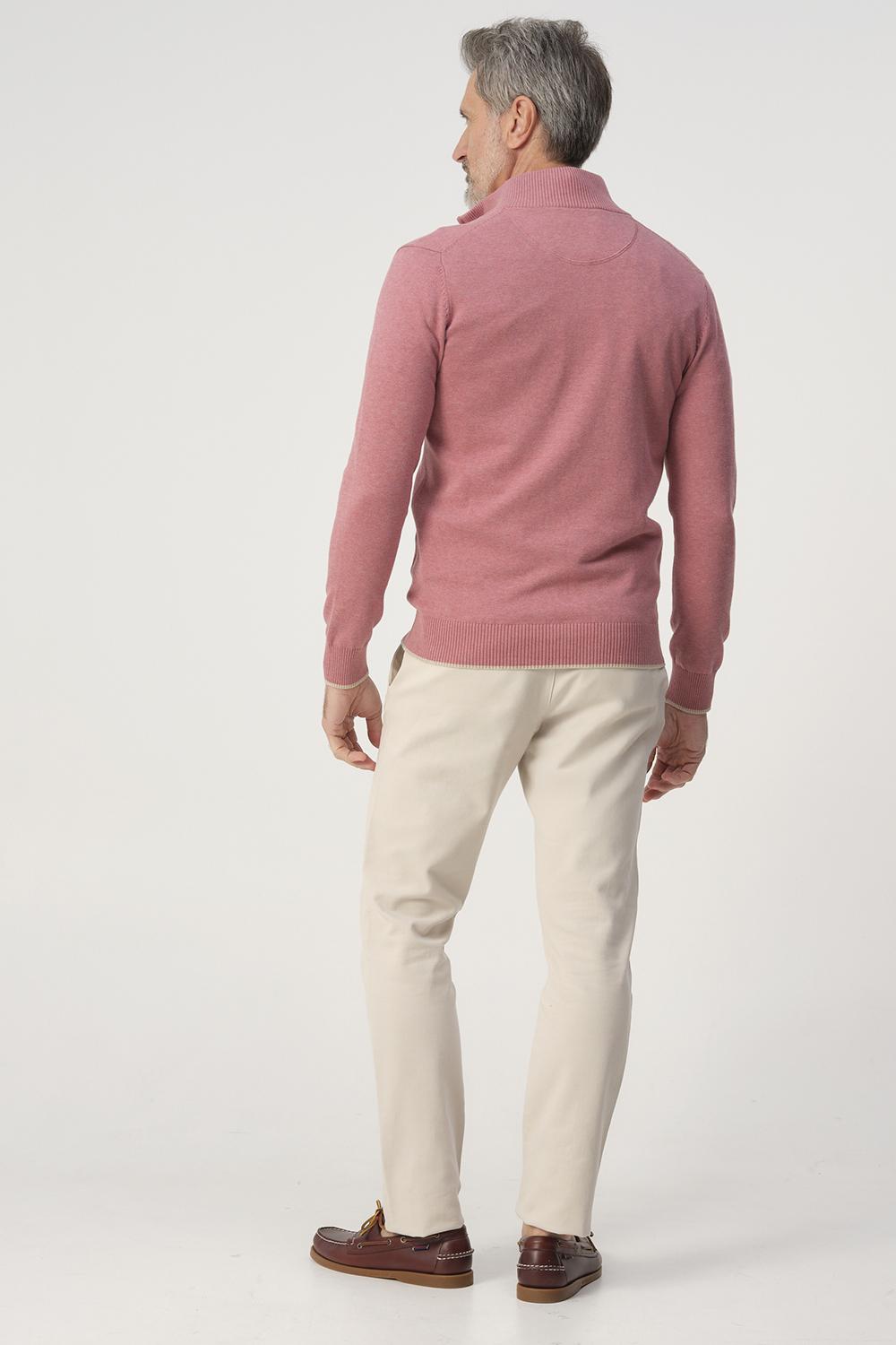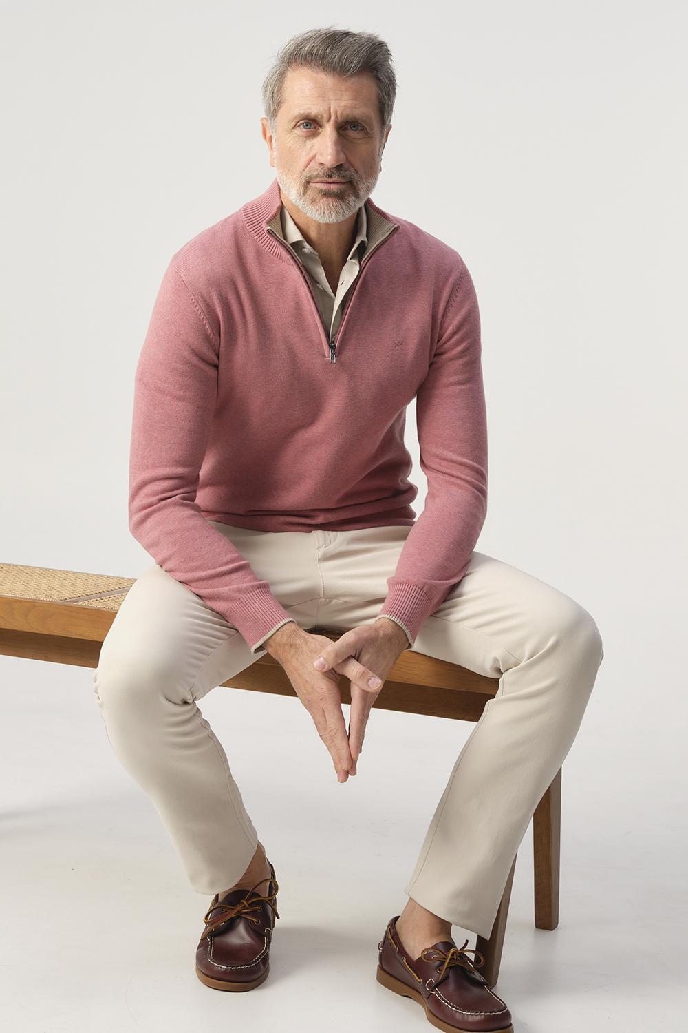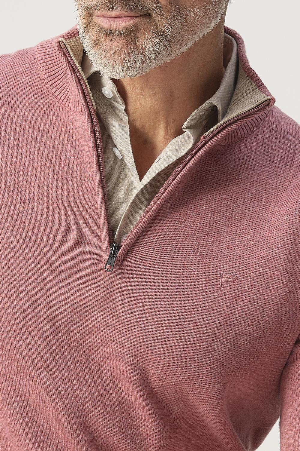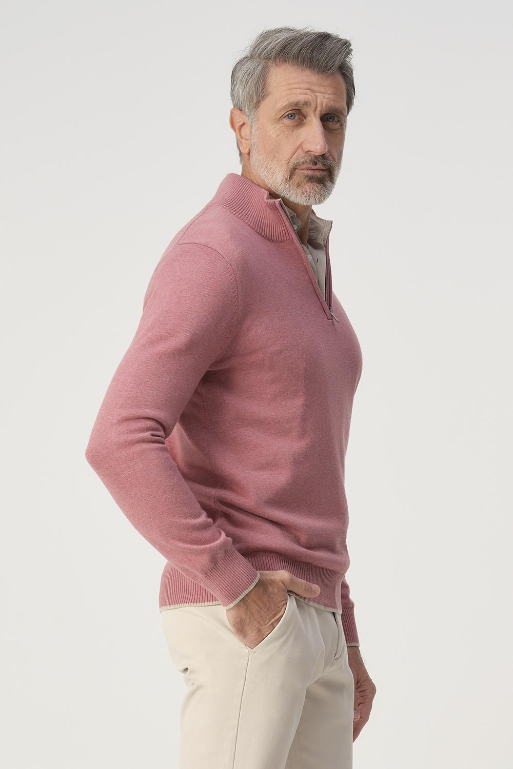 Deze gemêleerde Campbell trui is een stijlvolle toevoeging aan je garderobe. De trui heeft een regular fit pasvorm en is gemaakt van een hoogwaardige mix van 87% katoen, 11% polyamide en 2% elastaan. Hierdoor voelt hij zacht aan de huid en biedt hij comfort tijdens de lente. De opvallende hoge hals met rits geeft de trui een moderne touch, terwijl de subtiele structuur een extra dimensie toevoegt aan het ontwerp. Een ideaal stuk voor zowel casual als nettere gelegenheden. Dankzij zijn elegante roze tint is deze Campbell trui gemakkelijk te combineren met zowel jeans als chique broeken. Het fijne breisel zorgt voor een luxe uitstraling die je moeiteloos van een dag op kantoor naar een avond uit kunt dragen. Met de lange mouwen en normale lengte is de trui comfortabel bij verschillende temperaturen, waardoor hij perfect is voor het onvoorspelbare lenteseizoen. Voeg een distinctieve stijl toe aan je collectie met deze veelzijdige herentrui.