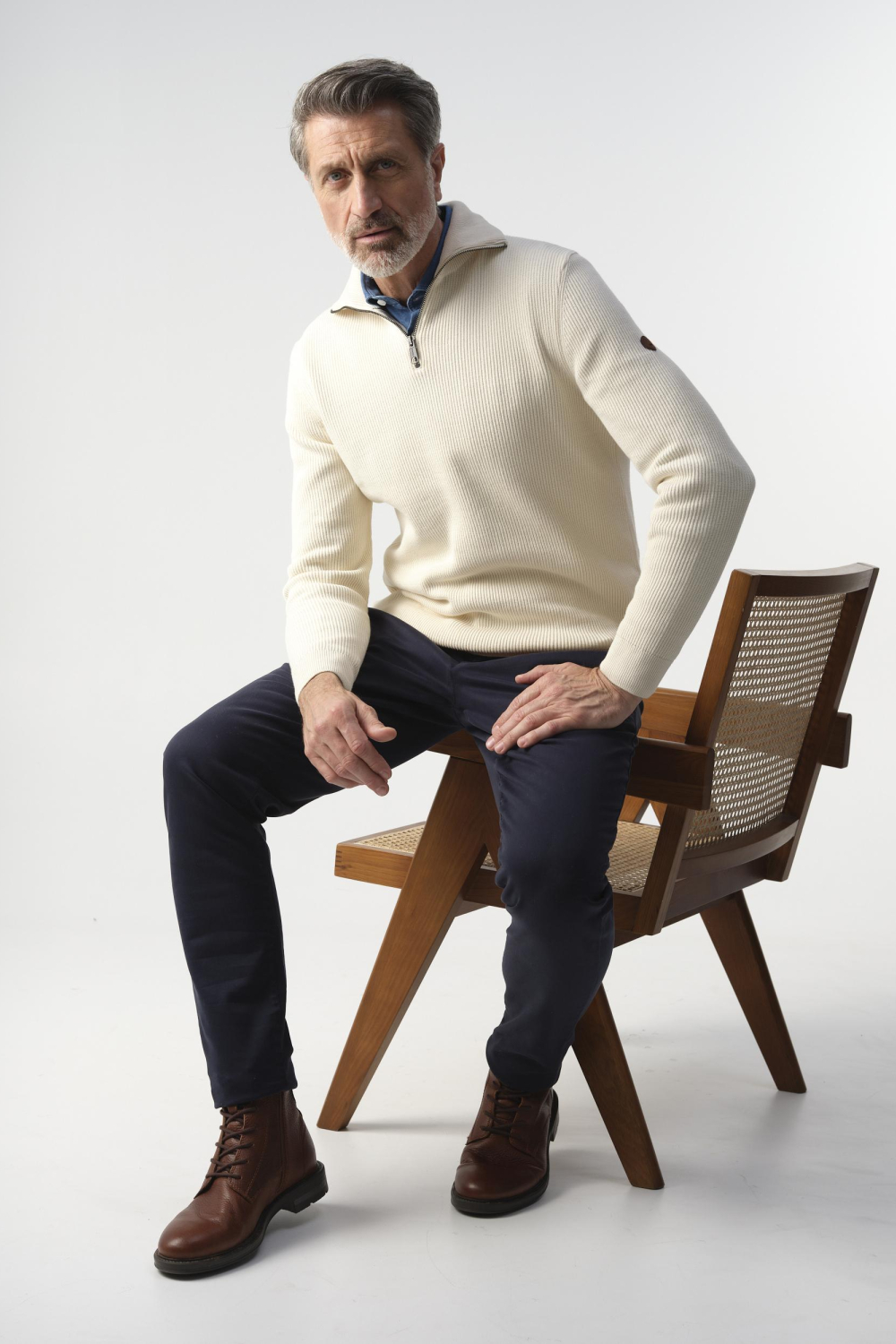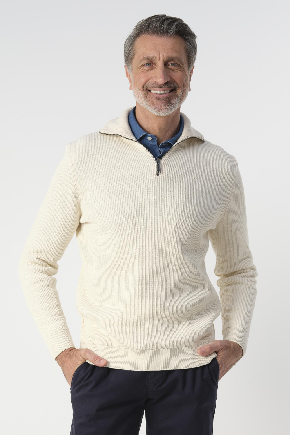 Deze crème trui van Campbell is een stijlvolle keuze voor de herfst. Gemaakt van 100% katoen, biedt deze trui een comfortabele en ademende pasvorm. De trui heeft een regular fit en een modieuze high neck met een ritssluiting die zorgt voor een moderne uitstraling. Het ribpatroon geeft een subtiele textuur, perfect voor casual en semi-formele gelegenheden. Draag deze veelzijdige trui tijdens een ontspannen dagje uit of naar een informele bijeenkomst. De lange mouwen en de normale lengte maken het een praktische keuze voor koelere dagen. Dankzij de neutrale kleur kun je deze trui gemakkelijk combineren met een donkere jeans of een nette chino. Met zijn tijdloze design en hoogwaardige materiaal is deze Campbell trui een essentiële aanvulling voor elke herengarderobe.