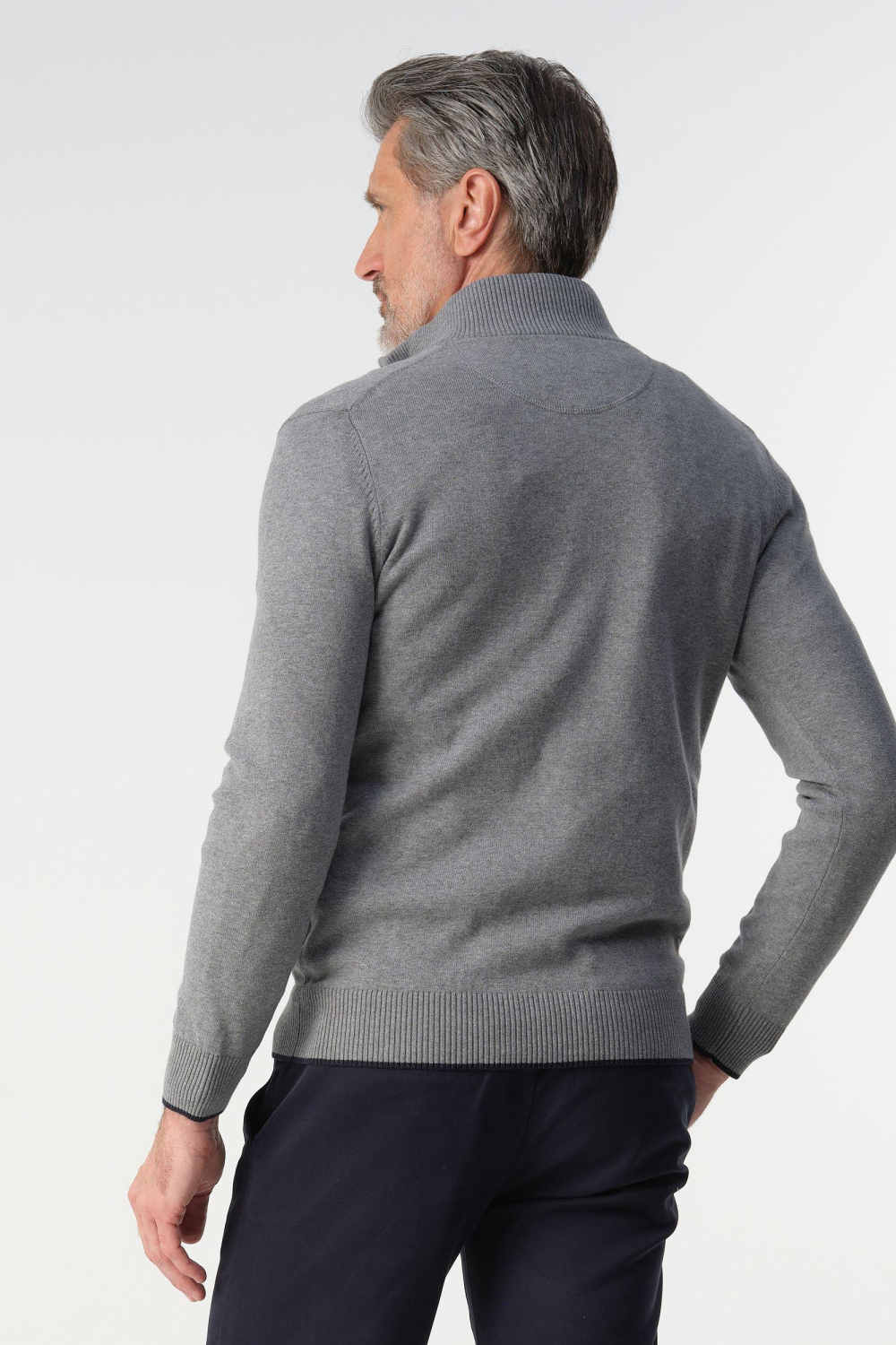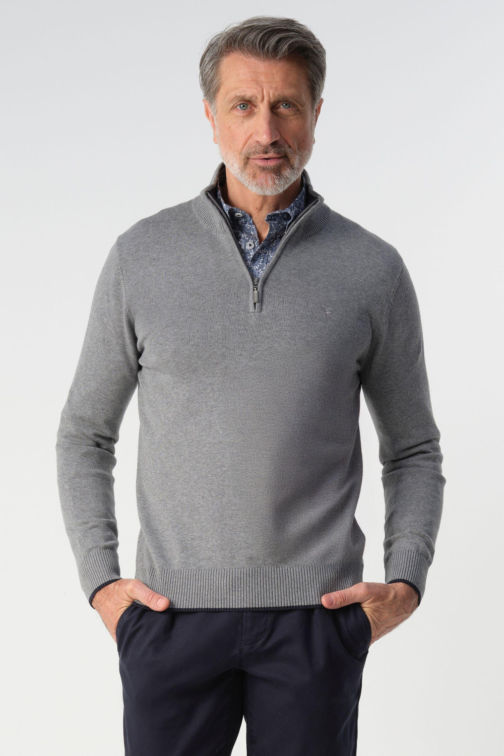 Deze stijlvolle grijze heren trui van Campbell is een veelzijdige toevoeging aan je wintergarderobe. Met zijn gemêleerde patroon en regular fit pasvorm, biedt hij een combinatie van comfort en stijl. De trui is voorzien van een praktische rits en een high neck voor extra warmte tijdens koude dagen. De samenstelling van 87% katoen, 11% polyamide en 2% elastaan maakt de trui niet alleen zacht, maar ook duurzaam en licht elastisch, wat zorgt voor een aangename pasvorm. De tijdloze uitstraling van deze Campbell trui maakt hem geschikt voor diverse gelegenheden. Ideaal voor een casual dag op kantoor of een ontspannen weekenduitje. Combineer hem met een nette chino voor een verzorgde look of draag hem op een jeans voor een meer relaxte uitstraling. Dankzij de lange mouwen en normale lengte is dit knitwear item een praktische keuze die je in stijl houdt, ongeacht de gelegenheid.