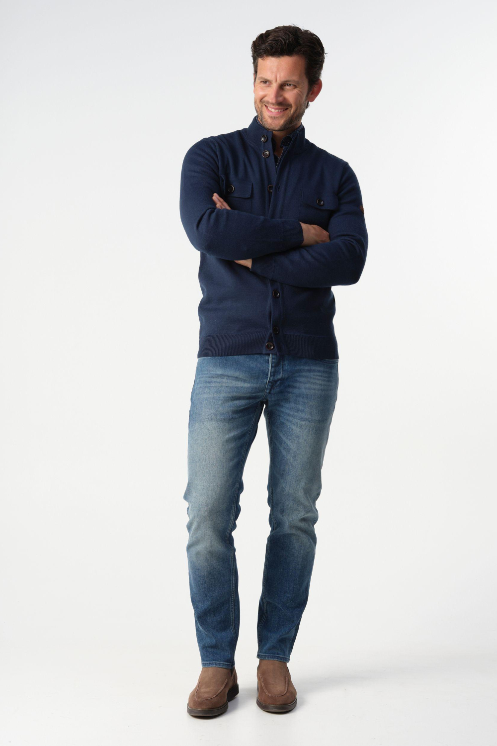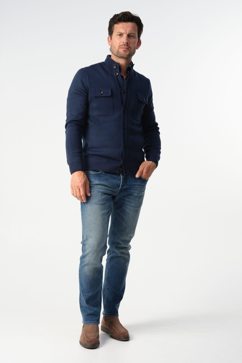 Dit stijlvolle navy vest van Campbell is een veelzijdige aanvulling op jouw wintergarderobe. Met een regular fit en een high neck biedt dit knitwear vest comfort en een moderne uitstraling. De gemêleerde stof voegt een subtiel detail toe, terwijl de stevige knoopsluiting en de praktische borstzakken functionaliteit combineren met stijl. Of je nu binnen blijft of een ontspannen wandeling maakt, dit vest is perfect voor allerlei gelegenheden. De lange mouwen en de normale lengte maken het ideaal voor koudere dagen. Draag het over een casual shirt voor een relaxte look, of combineer het met jeans en laarzen voor een avondje uit. Dit Campbell vest belooft een comfortabele en modieuze match voor elke dag.