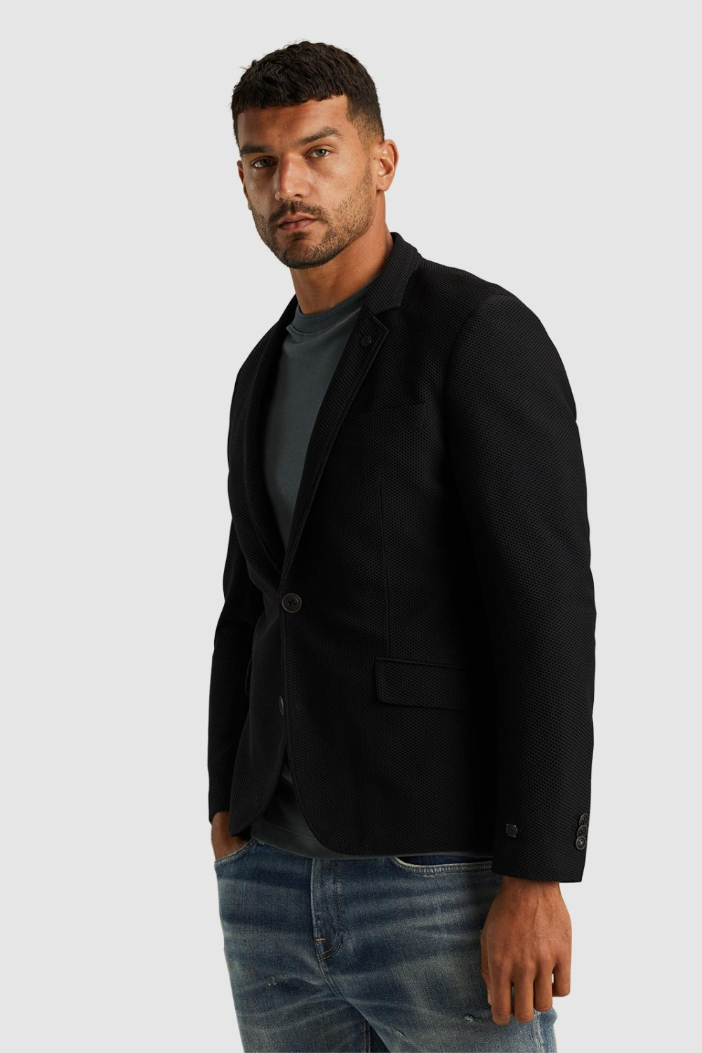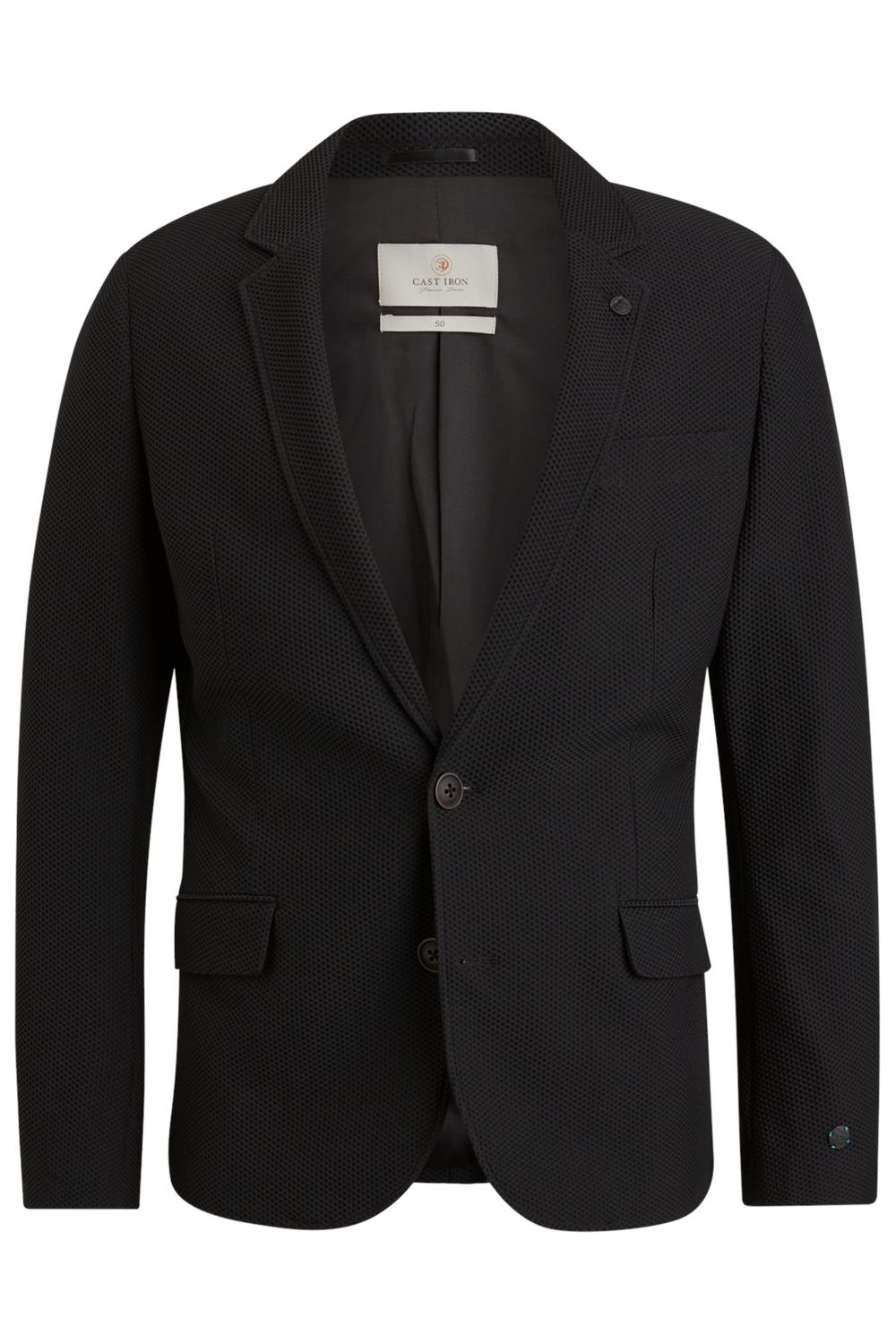 Het Cast Iron colbert brengt stijl en comfort samen in een subtiel gestructureerd ontwerp. Gemaakt van 81% nylon en 19% PU, biedt dit jasje een duurzame en stevige kwaliteit voor heren. De zwartkleurige stof heeft een verfijnde structuur die zorgt voor een moderne look. De revers kraag en klepzakken benadrukken de casual stijl van dit colbert. De voering van polyester zorgt voor extra comfort, ideaal voor de koudere winterdagen. Dit regular fit colbert is een veelzijdige toevoeging aan je garderobe. De sluiting met een haakje geeft het geheel een strakke en nette afwerking, perfect voor een casual dag op kantoor of een ontspannen diner. Met zijn normale lengte en lange mouwen biedt het colbert een mooie balans tussen stijl en functionaliteit. Combineer het met een jeans voor een ontspannen look, of draag het met een nette broek voor een iets formelere gelegenheid. Of je nu naar een borrel gaat of een zakelijke meeting hebt, met dit colbert maak je een stijlvolle entree.