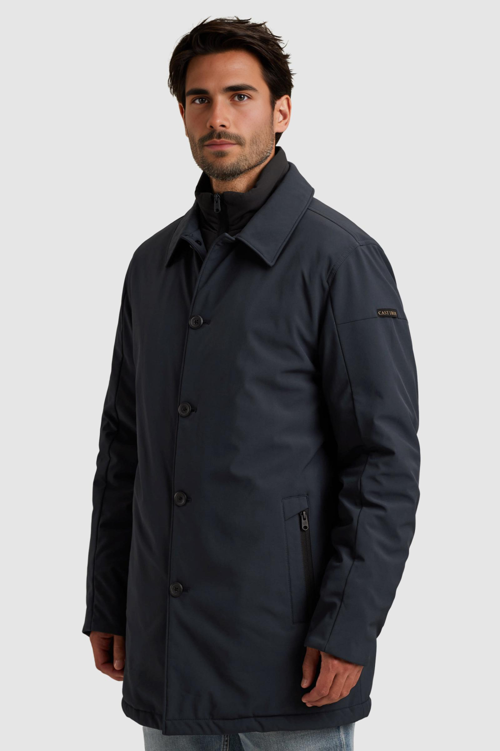 Deze stijlvolle winterjas van Cast Iron is een essentiële toevoeging aan je garderobe voor de koudere maanden. Gemaakt van 94% polyester en 6% elastaan, biedt de jas een comfortabele en duurzame stof die geschikt is voor dagelijks gebruik. Het is voorzien van een puntkraag en heeft zowel een knoop- als ritssluiting, wat de jas niet alleen praktisch maar ook elegant maakt. De ritszakken zijn een handige extra om je spullen veilig in op te bergen.