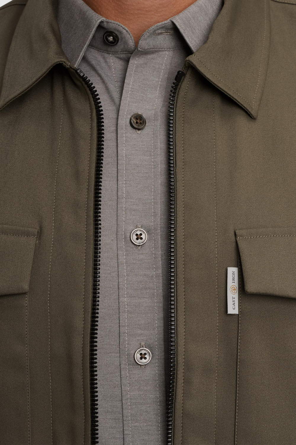 Deze casual herenjas van Cast Iron combineert stijl met comfort en is een uitstekende keuze voor het herfstseizoen. Gemaakt van een zachte mix van 69% katoen, 27% nylon en 4% elastan, biedt de jas een comfortabele drapering met een lichte stretch voor extra bewegingsvrijheid. De jas heeft een klassieke puntkraag en een handige ritssluiting, wat een moderne uitstraling geeft aan je outfit. De twee borstzakken zorgen niet alleen voor een praktische opbergmogelijkheid, maar dragen ook bij aan de stijlvolle uitstraling.