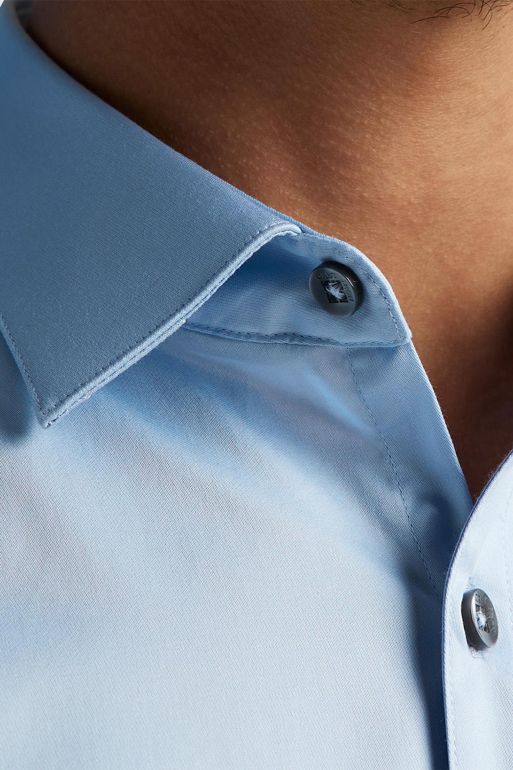 Dit verfijnde overhemd van Cast Iron is een stijlvolle toevoeging aan je kledingcollectie. Het lichtblauwe overhemd heeft een slim fit pasvorm en is gemaakt van 97% katoen en 3% elastaan, wat zorgt voor een comfortabele en soepele fit. De klassieke puntkraag en nette knoopsluiting geven het overhemd een moderne look die zowel elegant als veelzijdig is. De mooi afgewerkte manchetten met een subtiele metalen knoop geven het geheel een extra chique uitstraling. Dit Cast Iron overhemd is perfect geschikt voor feestelijke gelegenheden of een nette zakelijke bijeenkomst in de wintermaanden. Dankzij zijn duurzame eigenschappen en het prachtige ontwerp, kun je het moeiteloos combineren met een donkere jeans voor een meer casual look, of met een elegante pantalon voor een formele setting. Een veelzijdig kledingstuk dat zowel stijl als comfort biedt, ideaal voor elke modieuze man.