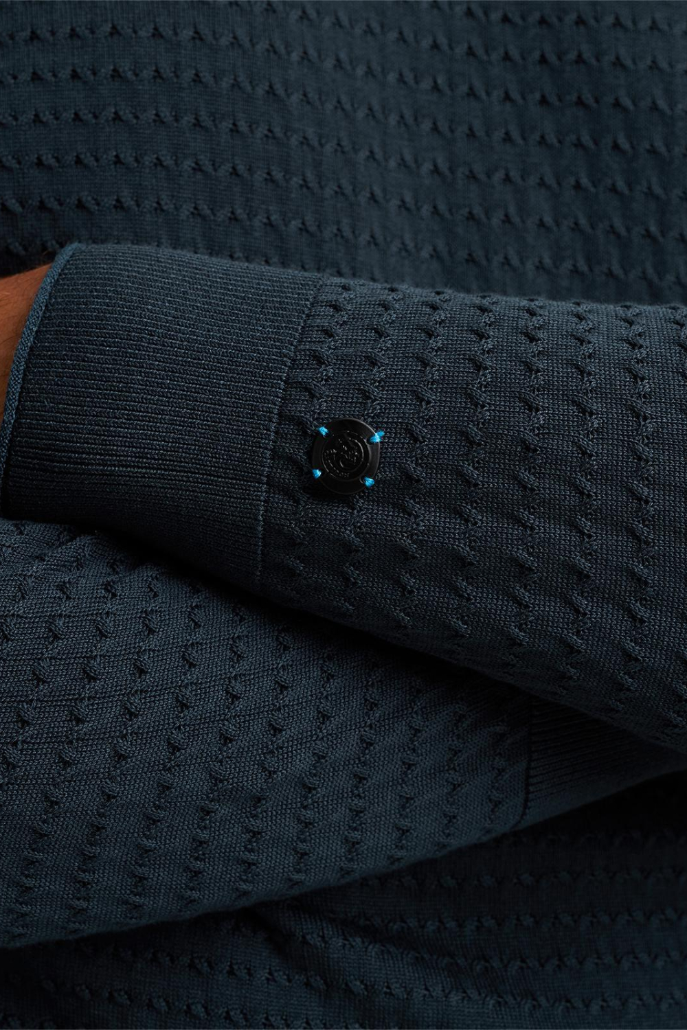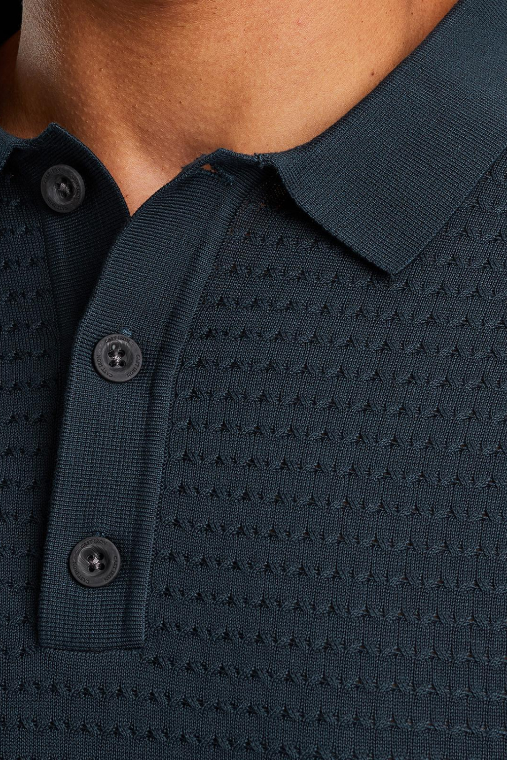 Deze stijlvolle navy polo van Cast Iron combineert moeiteloos comfort met een moderne uitstraling. Gemaakt van een mix van 50% katoen en 50% modal, voelt de stof heerlijk zacht aan op de huid en biedt het voldoende warmte voor de koudere wintermaanden. De regular fit zorgt voor een comfortabele draagervaring, terwijl de ribkraag en de knoopsluiting een klassieke touch toevoegen. De subtiele structuur in de stof geeft de polo een unieke look.