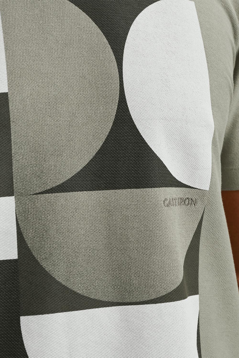 Zacht T-shirt van Cast Iron met een geometrische print op de voorkant. Dit model heeft een ronde hals en korte mouwen. Het T-shirt heeft een aantal typische Cast Iron kenmerken zoals de munt met de draak op de mouw en het logo op de rug.