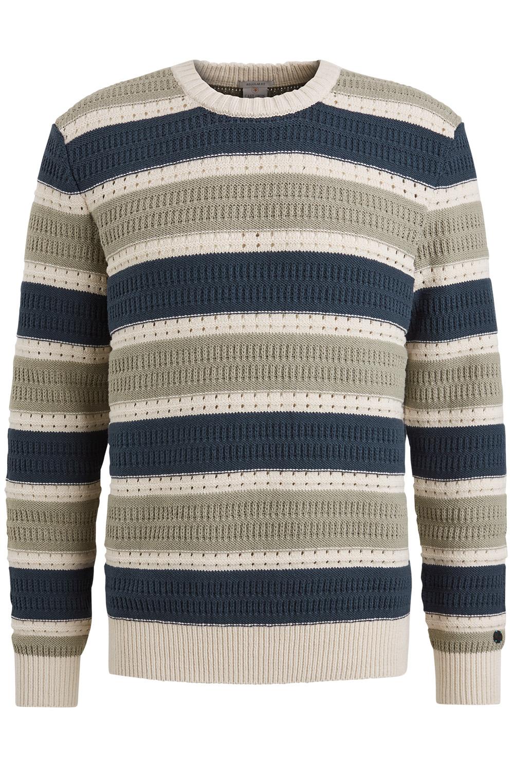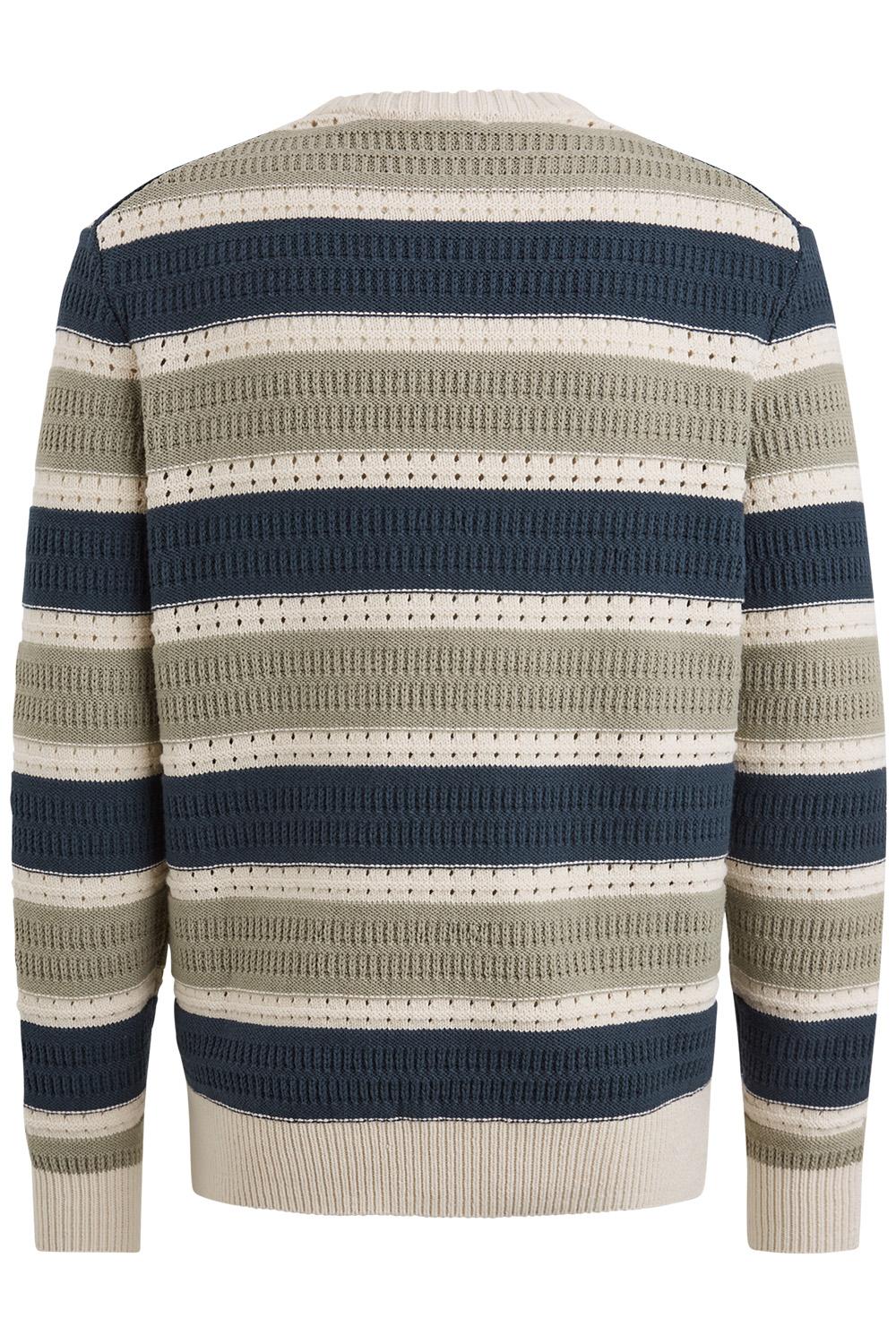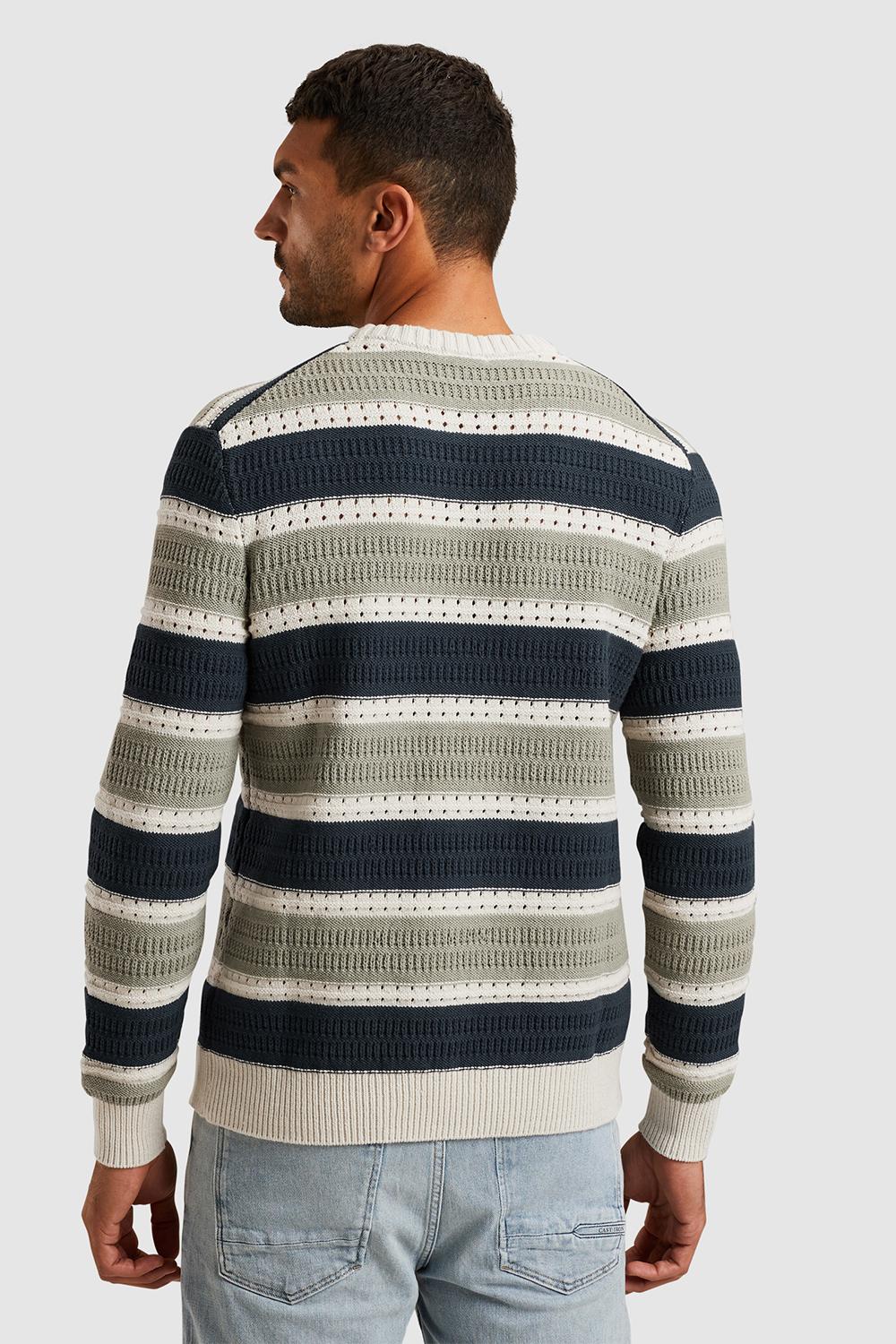 Deze ajour trui van Cast Iron, met zijn regular fit en moderne uitstraling, is een veelzijdige keuze voor jouw lentegarderobe. De trui is gemaakt van een comfortabele mix van 60% katoen en 40% acryl, waardoor hij zowel zacht als duurzaam aanvoelt. Het karakteristieke streeppatroon in neutrale tinten zoals navy, beige, en olijf, geeft je look een stijlvolle touch zonder te overheersen. De ronde halslijn en lange mouwen maken het een ideaal kledingstuk voor koelere lentedagen. Deze Cast Iron trui is perfect om te combineren met een lichte jeans voor een casual dagje uit, of draag hem met een chino voor een smart-casual outfit naar kantoor. De gedetailleerde knitwear structuur voegt een extra laag van verfijning toe, waardoor je met deze trui eenvoudig een statement maakt. Of je nu gaat voor een dagje in de stad of een ontspannen avondje thuis, deze trui past zich moeiteloos aan jouw plannen aan.