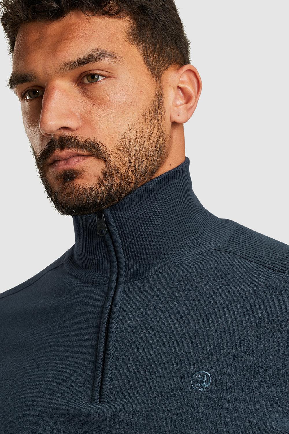 Deze stijlvolle gemêleerde trui van Cast Iron is een must voor je wintergarderobe. Gemaakt van 83% katoen, 15% polyester en 2% elastaan, biedt de trui een comfortabele en warme fit die ideaal is voor de koudere maanden. De hoge hals met rits zorgt niet alleen voor een moderne touch, maar ook voor extra warmte. De navy kleur geeft een klassieke uitstraling, terwijl de subtiele details het geheel verfijnen. Dankzij de regular fit heb je voldoende bewegingsvrijheid.