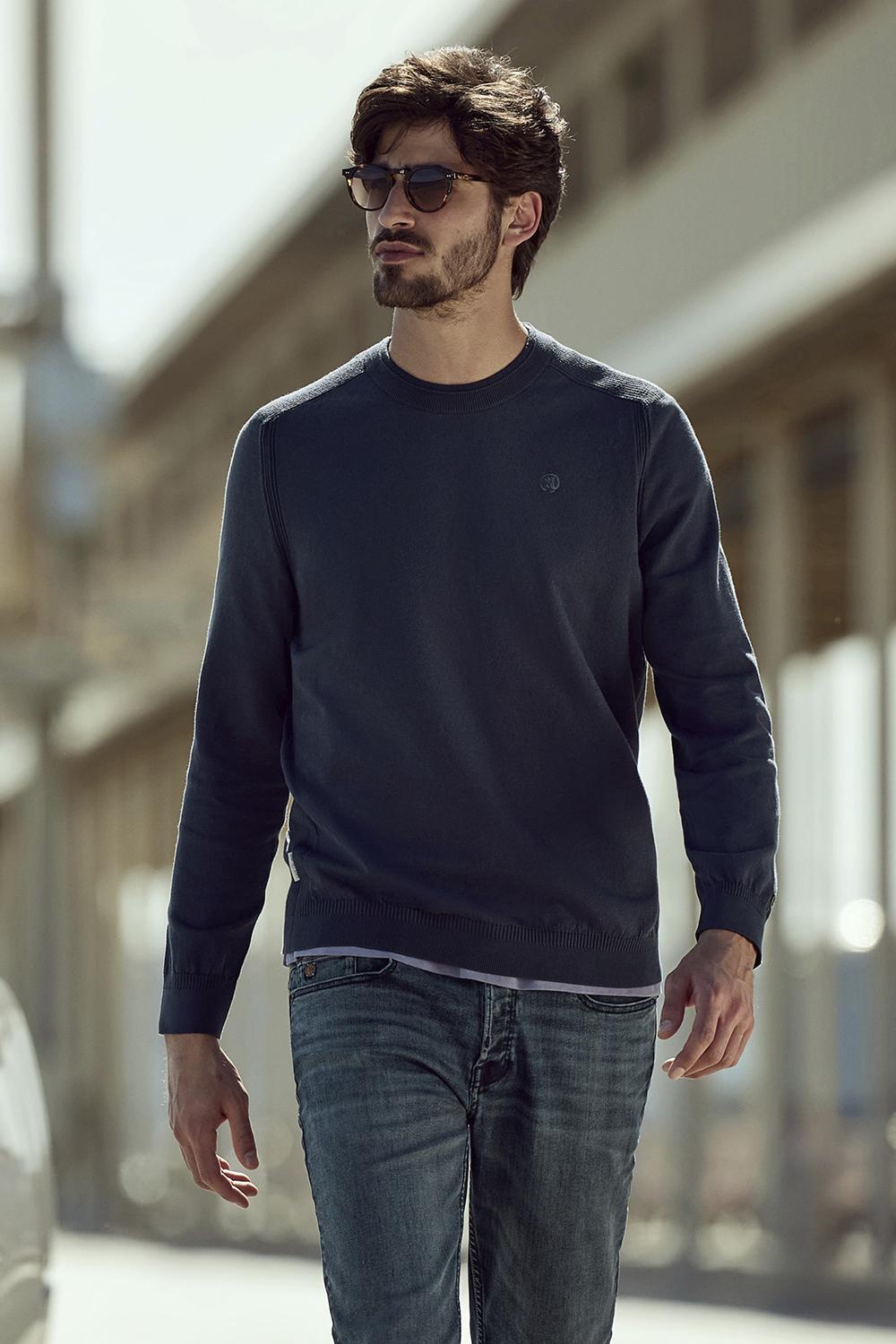 Deze navy Cast Iron trui is een veelzijdige keuze voor de moderne man. Met zijn regular pasvorm en ronde hals biedt dit kledingstuk zowel comfort als stijl, ideaal voor de winter. De trui is gemaakt van een mix van 83% katoen, 15% polyester en 2% elastan, wat zorgt voor een fijne stretch en duurzaamheid. Het subtiele logo op de borst en de fijne ribbelstructuur bij de schouders geven een extra staaltje vakmanschap en detail. Perfect om casual te dragen, combineer deze trui met een jeans voor een relaxte dag in de stad of voeg een blazer toe voor een meer verfijnde gelegenheid. Dankzij de lange mouwen en normale lengte is deze Cast Iron trui een praktische keuze voor dagelijks gebruik. Of je nu naar kantoor gaat of een weekendje weg, deze trui houdt je warm en modieus.