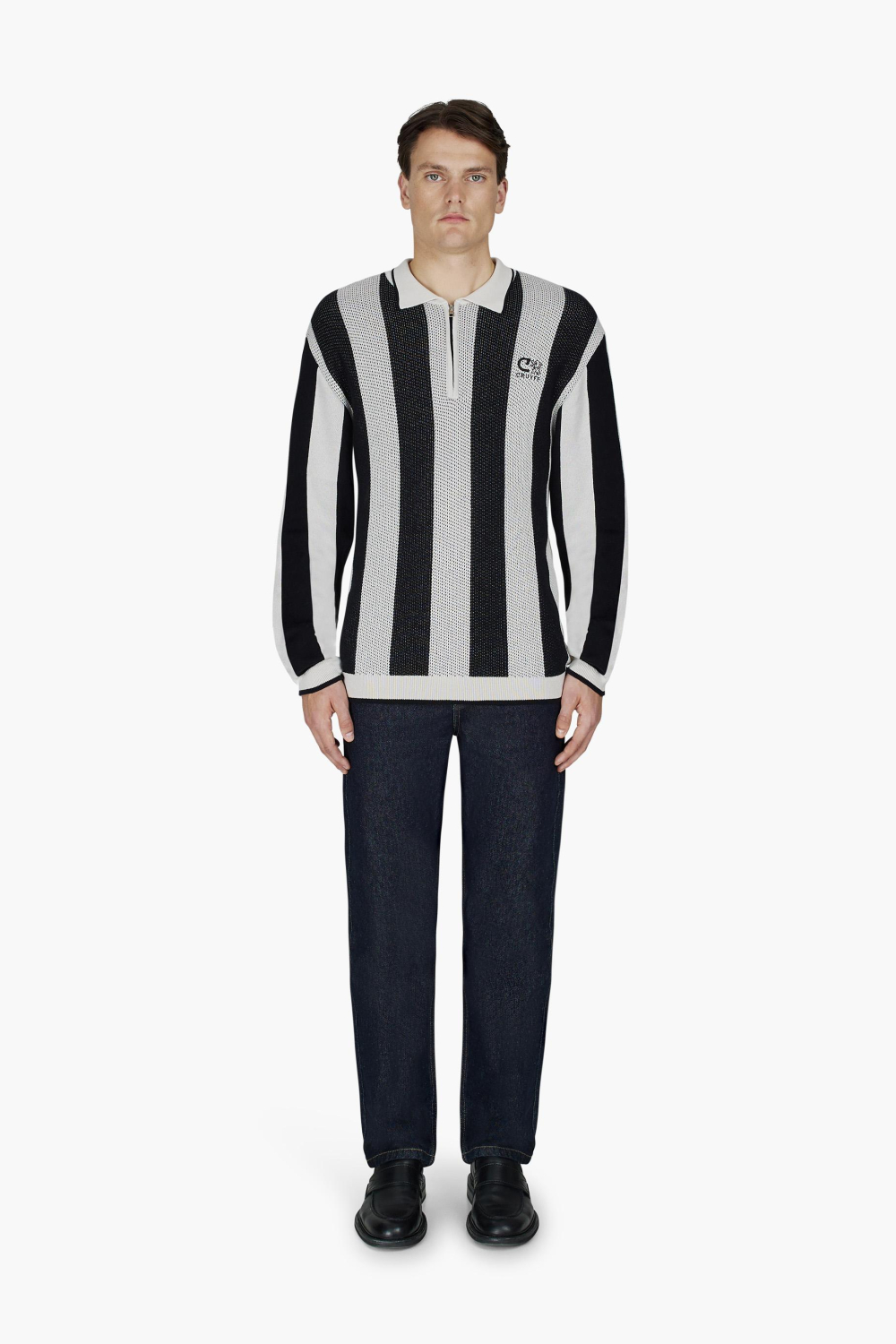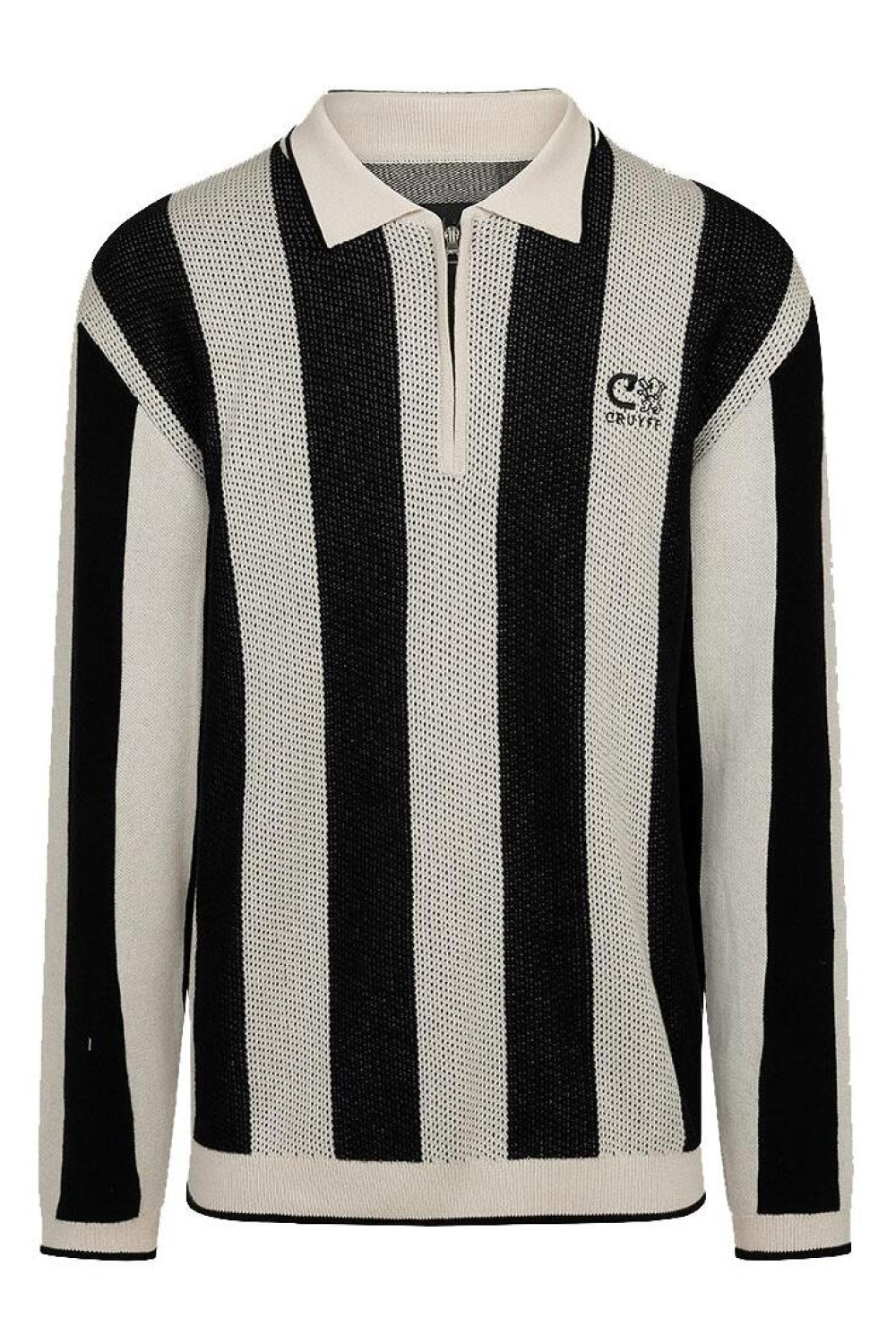 Deze Cruyff polo is een stijlvolle keuze voor de winter. Met zijn zwart-witte strepen en regular fit pasvorm biedt hij een moderne uitstraling zonder in te boeten aan comfort. De polo is gemaakt van 100% katoen, wat het ademend en aangenaam maakt om te dragen tijdens koelere dagen. De puntkraag en ritssluiting geven een subtiele, sportieve twist aan het klassieke ontwerp, perfect voor verschillende gelegenheden. Of je nu een gezellige avond thuis doorbrengt of vrienden ontmoet in de stad, deze Cruyff polo past bij alles. Dankzij de lange mouwen en normale lengte kun je het eenvoudig combineren met een donkere jeans voor een casual look, of kies voor een nette pantalon voor meer formele momenten. Het strakke streepdesign en het kenmerkende Cruyff-logo zorgen ervoor dat je altijd stijlvol voor de dag komt.