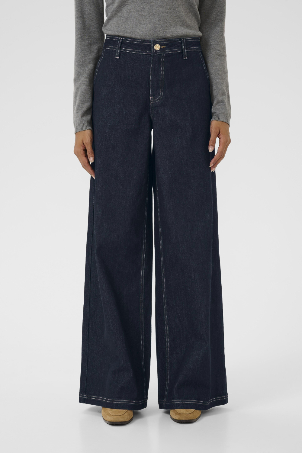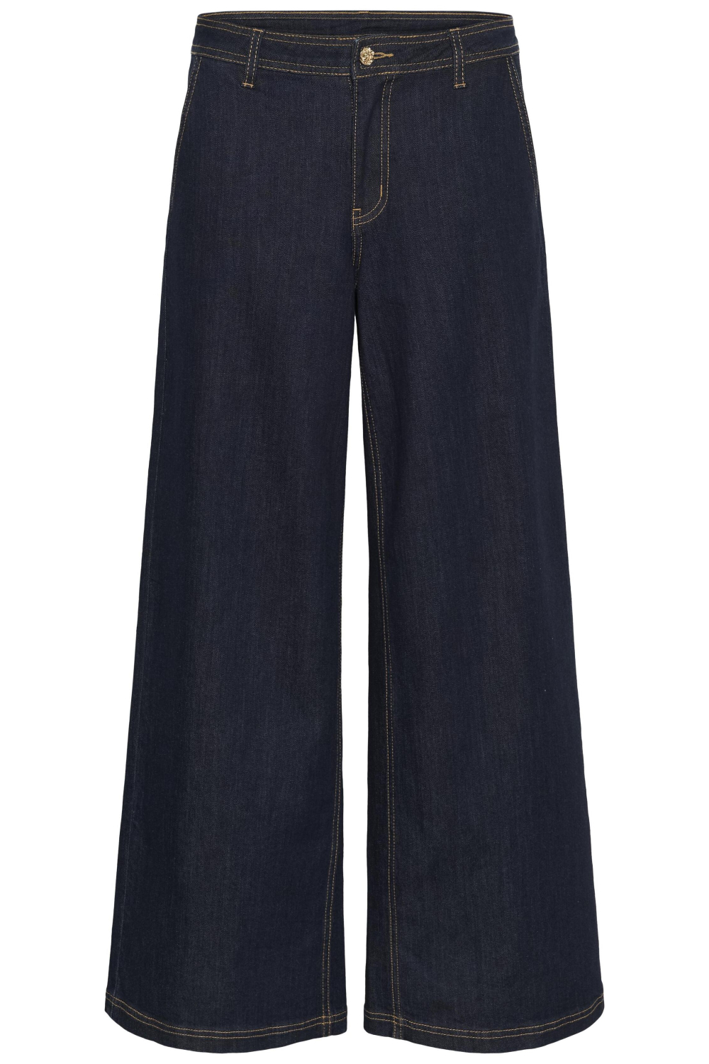 Deze damesjeans van Culture biedt een moderne twist met een klassieke wide leg pasvorm en een stijlvolle high waist. De rinsewash denim in diep indigo accentueert de tijdloze elegantie van de jeans. De jeans is gemaakt van een comfortabele mix van 70% katoen, 28% polyester en 2% elastaan, waardoor jij je de hele dag vrij kunt bewegen. De subtiele stiksels en stevige knoop- en ritssluiting voegen een verfijnde touch toe, terwijl de steekzakken praktisch gemak bieden.