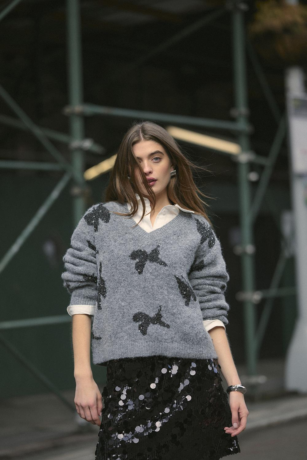 De Culture trui voor dames is een stijlvolle toevoeging in jouw herfstgarderobe. Met een regular fit pasvorm en een grafische print, biedt deze trui zowel comfort als flair. De zachte grijze stof is voorzien van een eigentijds patroon van zwarte vlinders, waardoor het een statement stuk wordt voor elke casual of chique gelegenheid. De V-hals creëert een luchtige uitstraling, ideaal voor zowel informele uitstapjes als wat chiquere gelegenheden. Perfect voor het herfstseizoen, voelt de trui heerlijk warm aan dankzij de lange mouwen en normale lengte. Deze knitwear trui is eenvoudig te combineren met zowel een elegante broek als een casual jeans, afhankelijk van de gelegenheid. Of je nu een dag op kantoor doorbrengt of een ontspannen weekend plant, de Culture trui zorgt ervoor dat je er altijd modieus uitziet. Bovendien is deze duurzame trui een bewuste keuze voor wie stijl en verantwoordelijkheid wil combineren.