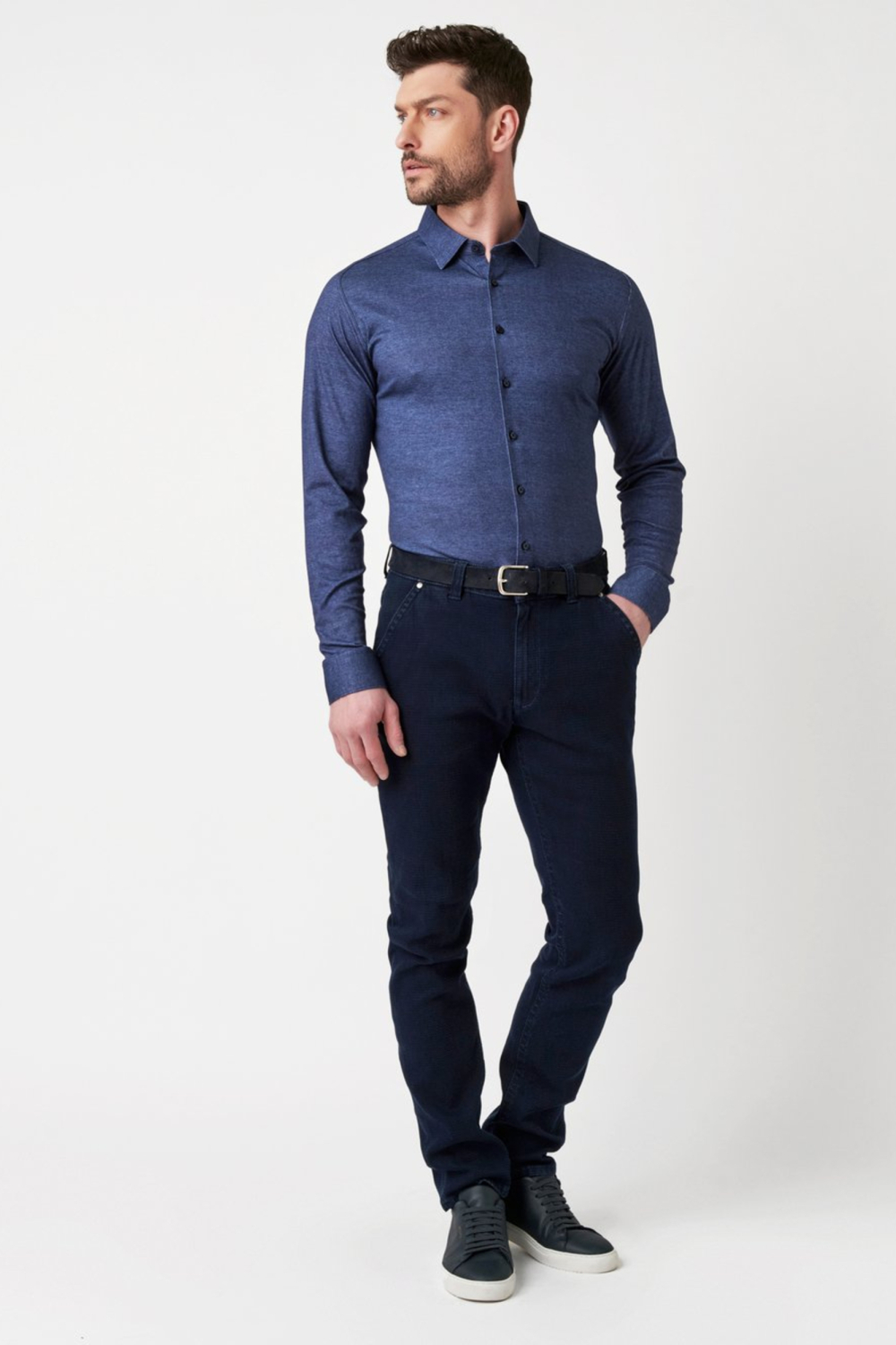 Ervaar het comfort van dit gemêleerde heren overhemd van Desoto. Met een verfijnde donkere tint en slim fit pasvorm, biedt dit overhemd een eigentijdse uitstraling die perfect aansluit bij jouw dagelijkse stijl. De klassieke puntkraag en knoopsluiting voegen een vleugje elegantie toe, terwijl de lange mouwen je net dat beetje extra warmte geven in het herfstseizoen. Gemaakt van 100% katoen, zorgt het overhemd voor een aangenaam en ademend gevoel, ideaal voor een lange dag op kantoor of een casual weekendlook. Het Desoto overhemd is veelzijdig en laat zich gemakkelijk combineren met zowel een nette pantalon als een casual jeans. Dankzij de subtiele gemêleerde textuur krijgt je outfit net dat beetje extra karakter zonder te overheersen. Of je nu naar een zakelijke bijeenkomst gaat of een ontspannen avondje uit plant, dit overhemd biedt de perfecte balans tussen stijl en comfort, waardoor je er moeiteloos stijlvol uitziet. Voeg dit veelzijdige stuk toe aan je garderobe en geniet van de tijdloze elegantie die Desoto te bieden heeft.