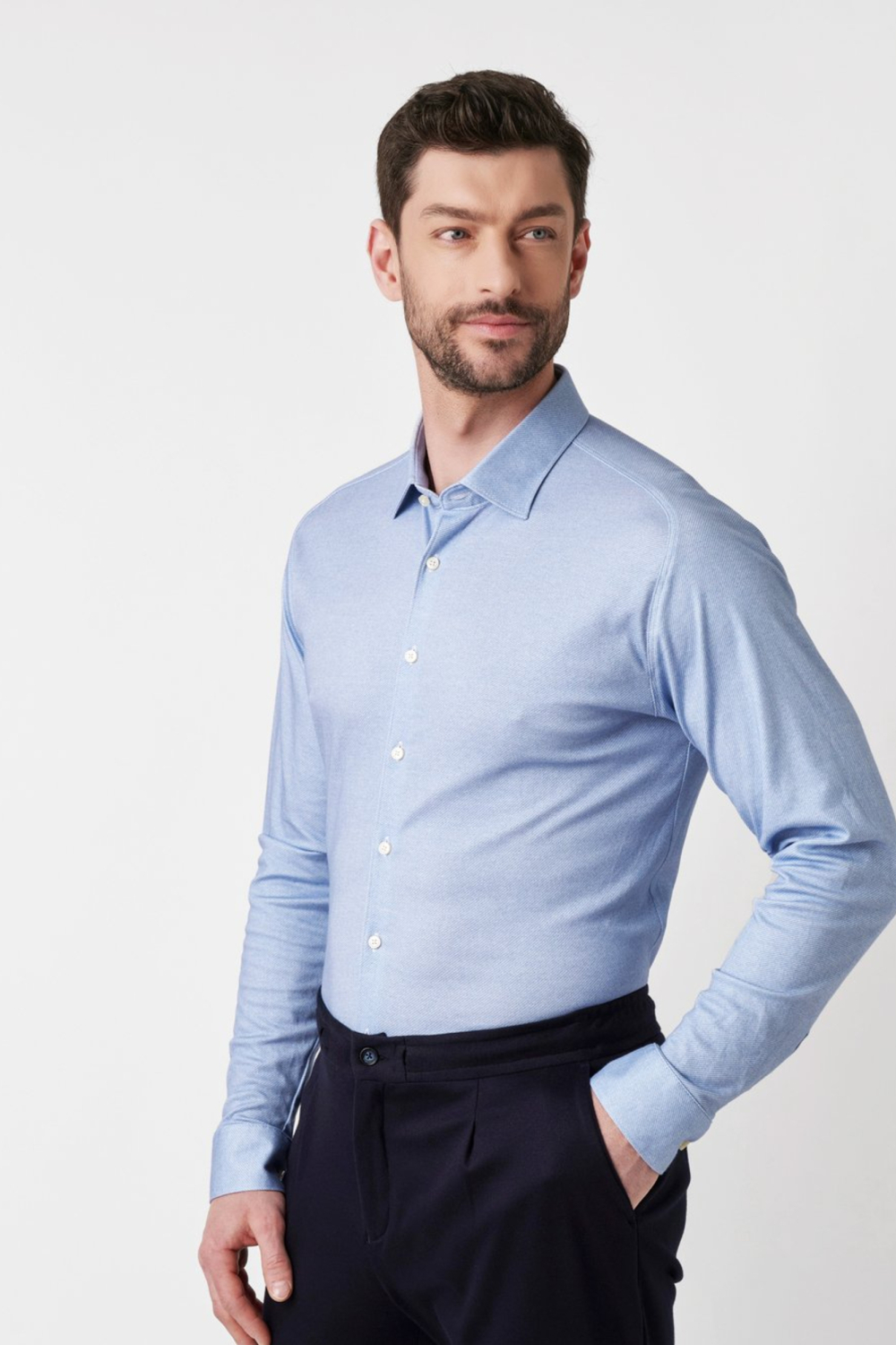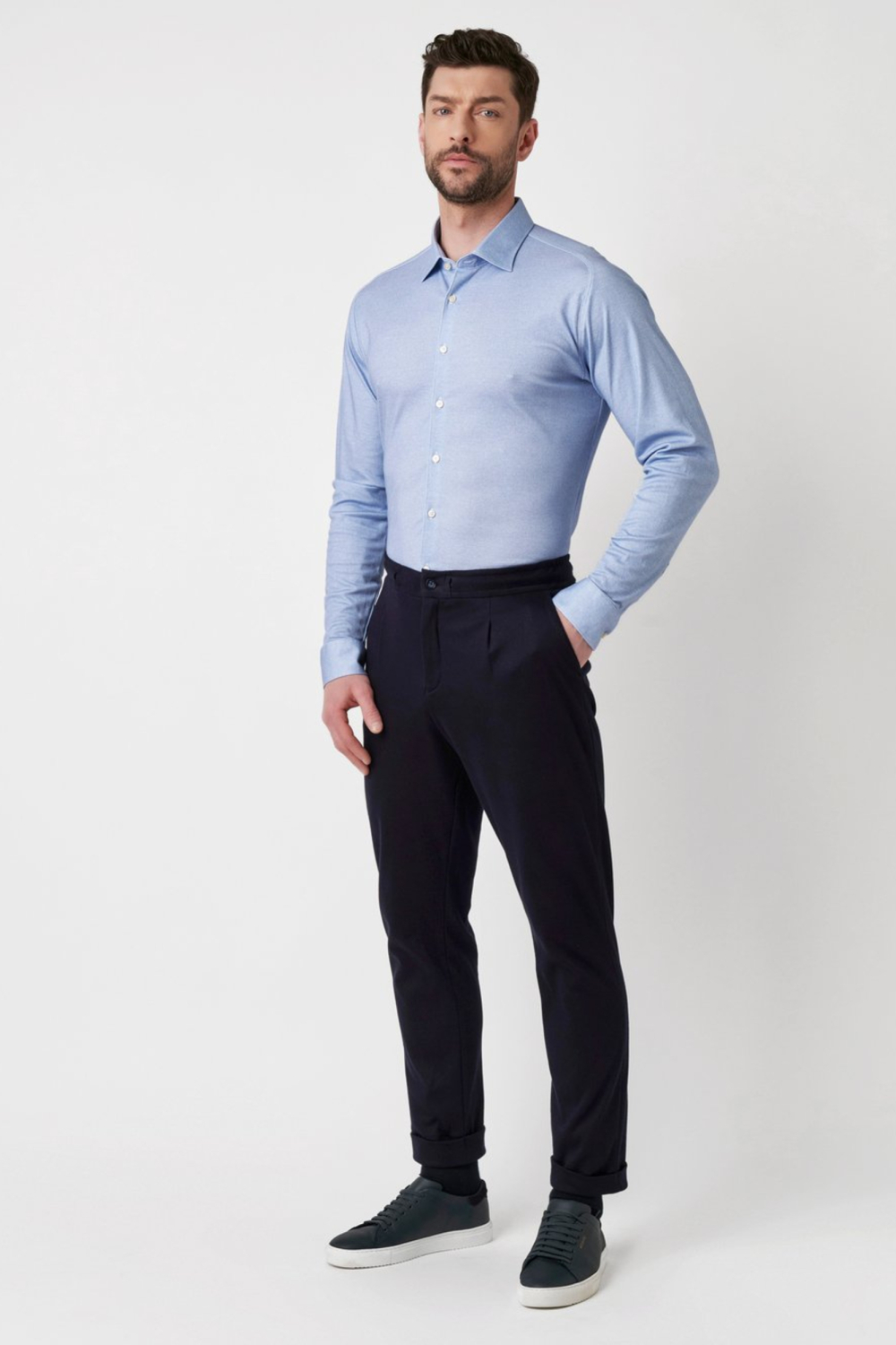 Dit casual blauwe Desoto overhemd is een stijlvolle aanvulling op je garderobe, perfect voor het herfstseizoen. Gemaakt van 100% katoen, biedt het niet alleen comfort, maar ook een ademende ervaring door de subtiele streeppatronen die in de stof zijn verwerkt. De slim fit pasvorm en de verfrissende blauwe tint geven het overhemd een eigentijdse uitstraling, terwijl de puntkraag en de knoopsluiting een klassieke touch toevoegen. Dankzij de lange mouwen en normale lengte past dit overhemd moeiteloos bij verschillende looks. Het kan elegant gecombineerd worden met een nette pantalon voor een zakelijke sfeer of met een casual jeans voor een meer ontspannen dagje uit. Of je nu naar een informele bijeenkomst gaat of een dag op kantoor doorbrengt, dit Desoto overhemd biedt je een stijlvolle en veelzijdige optie die gemakkelijk te matchen is.