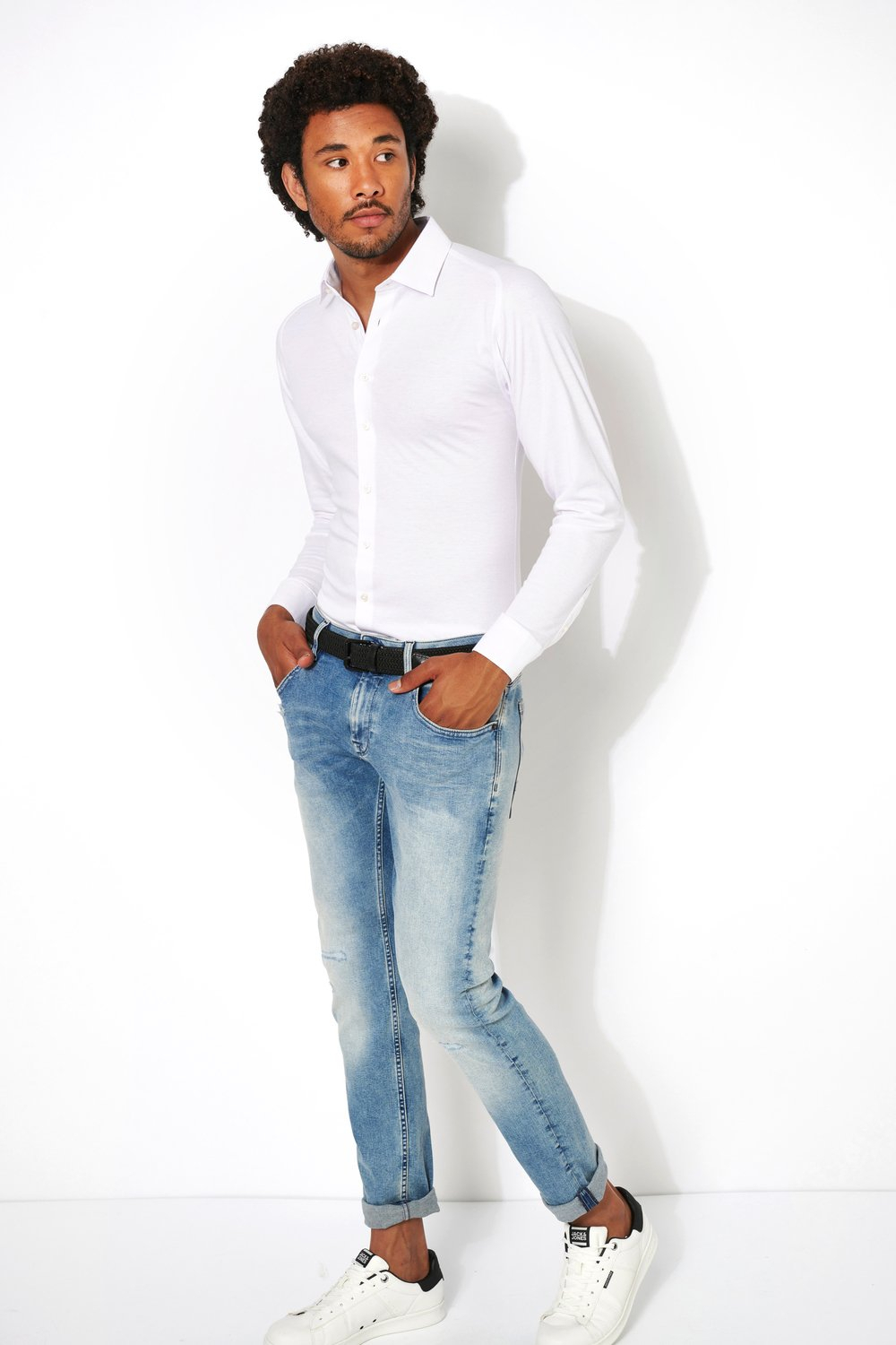 Dit witte heren overhemd van Desoto is een elegante toevoeging aan elke garderobe. Gemaakt van 100% katoen, biedt het een comfortabele en ademende stof die ideaal is voor zomerse dagen. Het overhemd heeft een slim fit pasvorm, wat zorgt voor een moderne en gestroomlijnde look. De klassieke puntkraag en knoopsluiting geven het overhemd een verfijnde uitstraling, perfect voor feestjes en casual bijeenkomsten. Met zijn tijdloze witte kleur is dit Desoto overhemd eenvoudig te combineren met verschillende stijlen. Of je nu kiest voor een nette jeans of een chino, dit overhemd zorgt altijd voor een stijlvolle uitstraling. De lange mouwen en normale lengte maken het zowel geschikt voor een dag op kantoor als een avondje uit. Dankzij het veelzijdige ontwerp en hoogwaardige materiaal is dit overhemd een slimme keuze voor diverse gelegenheden.