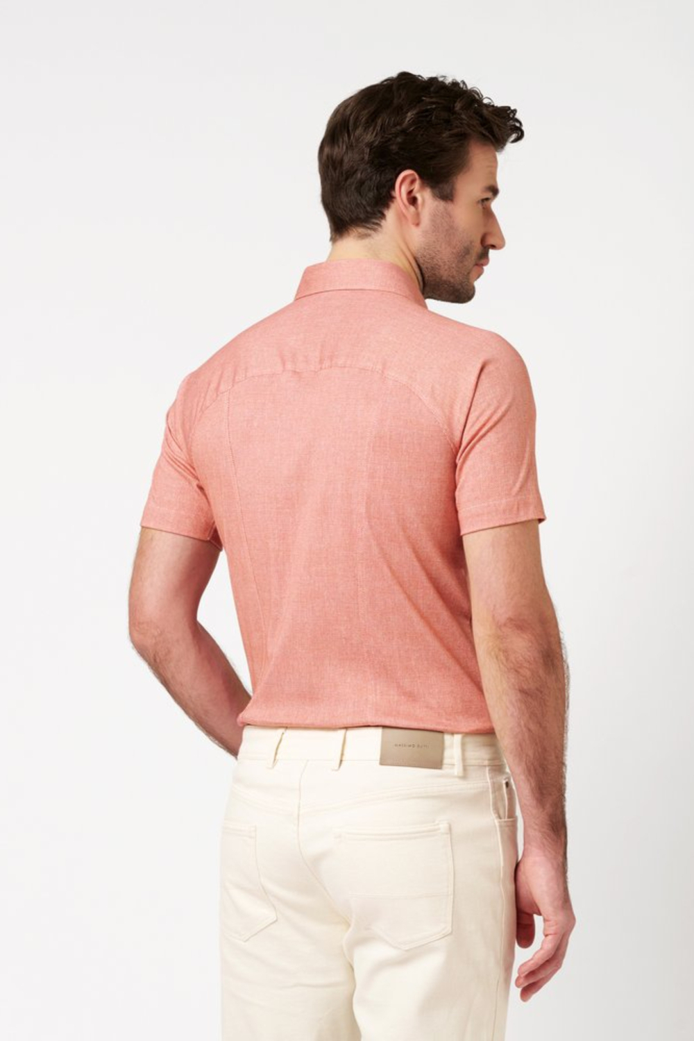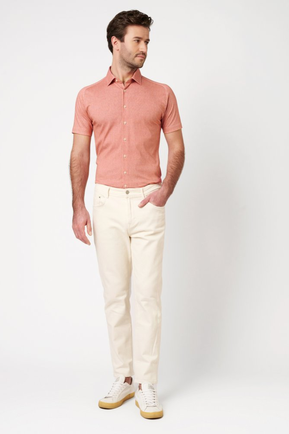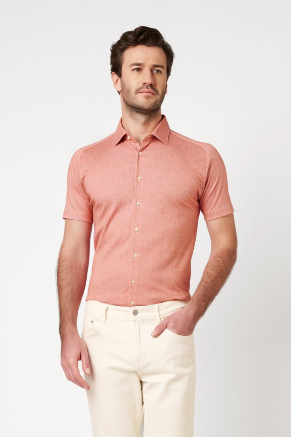 Dit gemêleerde Desoto overhemd voor heren combineert stijl en comfort op subtiele wijze. Met een slim fit pasvorm en een klassieke puntkraag creëert dit overhemd een moderne uitstraling die perfect aansluit bij verschillende gelegenheden. De korte mouwen en de zachte stof van 100% katoen maken het een ideale keuze voor de lente. De knoopsluiting en het verfijnde patroon zorgen voor een tijdloze charme, waardoor je er zowel tijdens een informele bijeenkomst als op een warme lentedag stijlvol uitziet. De aangename kleuren en de precieze afwerking maken dit Desoto overhemd tot een veelzijdige aanvulling op je garderobe. Het normale lengteontwerp zorgt voor een relaxte maar toch verfijnde look, die je gemakkelijk kunt combineren met een lichte jeans of een nette pantalon. Of je nu een casual outfit zoekt voor een dagje uit of een iets meer formele uitstraling wenst voor een gezellige avond, met dit overhemd maak je een stijlvolle en comfortabele keuze.