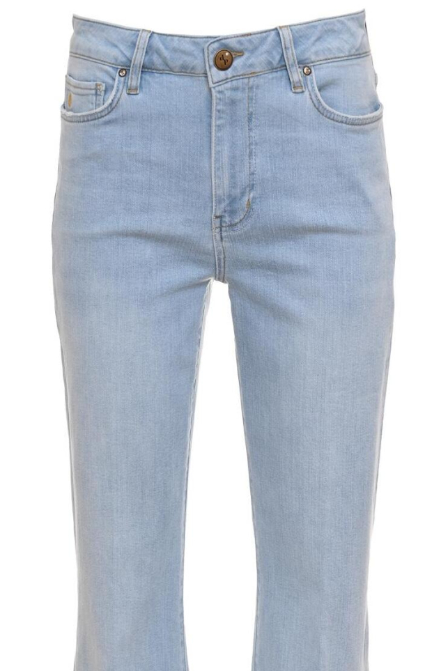 Deze stijlvolle flared jeans van Dnm pure is een veelzijdige toevoeging aan je basisgarderobe. De stonewash afwerking geeft deze light bleach jeans een tijdloze uitstraling, perfect voor zowel casual als iets formelere gelegenheden. Met een 5-pocket ontwerp en een knoop- en ritssluiting biedt deze jeans zowel functionaliteit als comfort. De flared pasvorm in combinatie met de regular waist zorgt voor een flatterende look die je silhouet accentueert. Gemaakt van hoogwaardig denim, voelt de stof comfortabel aan en biedt deze een goede duurzaamheid. Deze jeans sluit mooi aan op de heupen en loopt wijd uit bij de benen, wat een elegante maar toch ontspannen uitstraling geeft. Combineer deze Dnm pure jeans met een trendy blouse voor een dag op kantoor, of met een casual T-shirt voor een relaxte weekendlook. Of je nu onderweg bent naar een lunchafspraak of een avondje uit, deze jeans is een goede keuze voor diverse gelegenheden.
