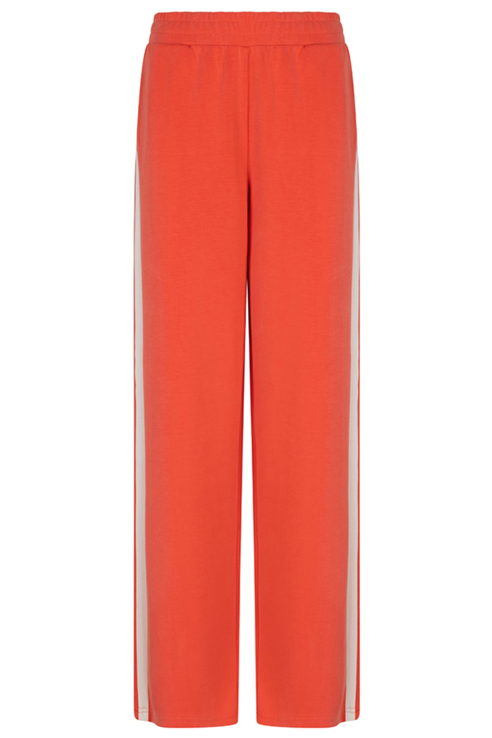 Deze trendy broek van EsQualo biedt een perfecte balans tussen stijl en comfort. De opvallende oranje kleur met subtiele strepen aan de zijkant maakt het een uitstekende keuze voor een casual look. Dankzij de wide leg pasvorm geniet je van bewegingsvrijheid, terwijl de elastische boord zorgt voor een comfortabele fit. De combinatie van 48% modal, 48% polyester en 4% elastan verzekert een zachte aanraking, ideaal voor de winterse maanden. Of je nu een dagje uit plant of gewoon thuis wilt ontspannen, deze EsQualo broek is een veelzijdige aanvulling op je garderobe. De regular waist en de normale lengte maken het eenvoudig om te combineren met een simpele top of een warme trui. Van een gezellige middag met vrienden tot een lunchafspraak, deze broek biedt een modieuze touch aan je dagelijkse outfits zonder concessies te doen aan comfort.