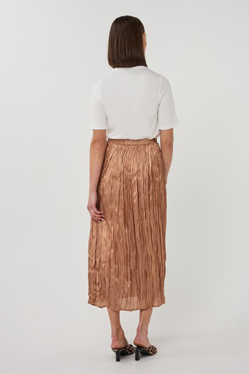 Deze elegante lange rok van EsQualo is een veelzijdige aanvulling op je garderobe. Met zijn lichte plissépatroon en vloeiende stof straalt deze rok casual elegantie uit, perfect voor het lente seizoen. De rok heeft een regular fit en een elastische boord, waardoor hij comfortabel zit en moeiteloos meebeweegt. Deze damesrok is gemaakt van 100% polyester, wat zorgt voor een lichte glans en zachte textuur. De warme tint geeft een subtiele en stijlvolle uitstraling die gemakkelijk te combineren is met verschillende tops en accessoires. Of je nu een dagje uit gaat of een informeel diner plant, deze rok biedt de ideale balans tussen comfort en stijl. De lengte van de rok maakt hem geschikt voor diverse gelegenheden, terwijl de regular waist zorgt voor een flatterende pasvorm. Voeg deze EsQualo rok toe aan je collectie voor een tijdloze doch trendy look. Meer informatie: De totale lengte is 90 cm bij maat 36.