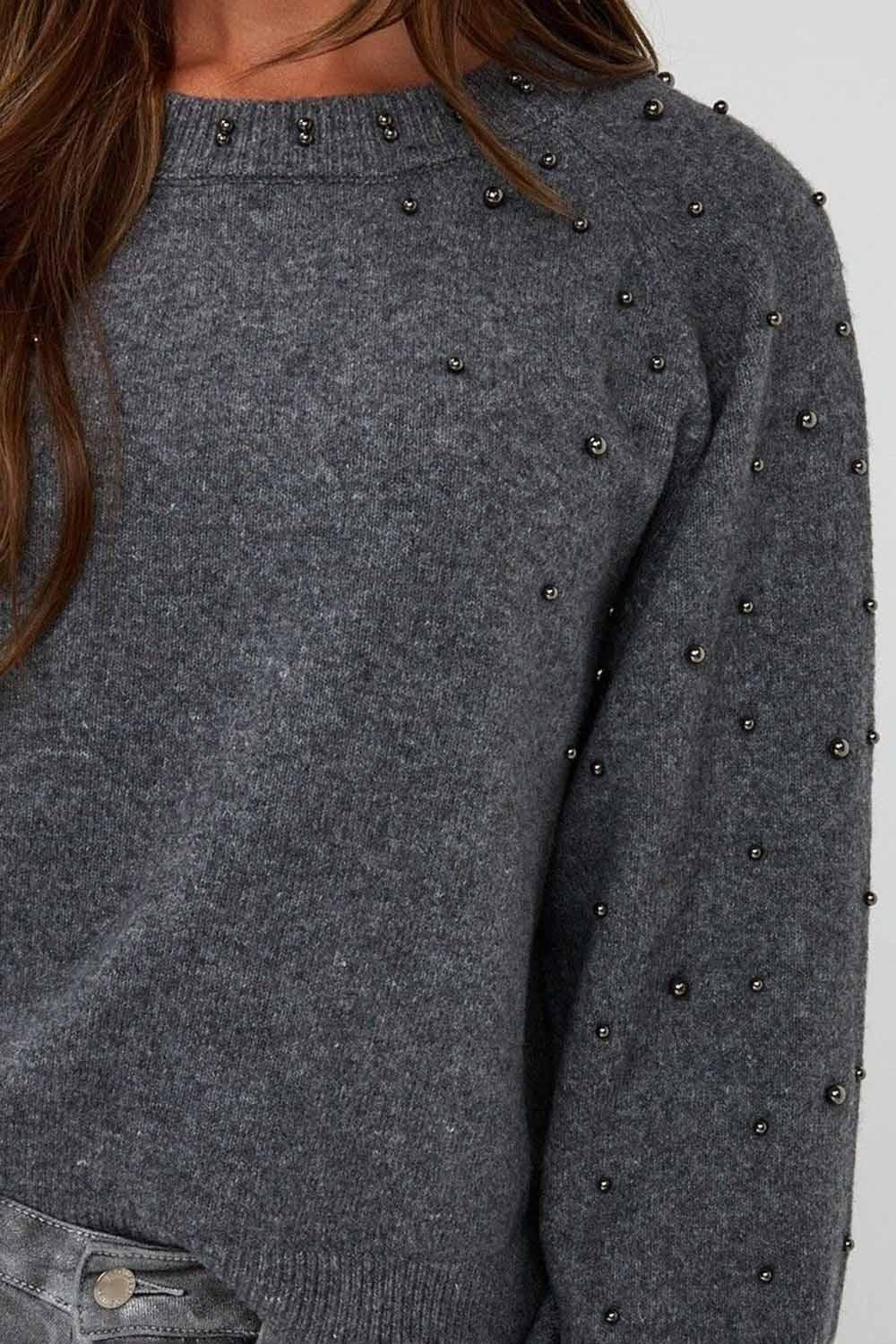 Deze vrouwelijke EsQualo trui in de kleur dark grey melange is een verfijnde toevoeging aan jouw najaarsgarderobe. De regular fit pasvorm geeft je zowel comfort als stijl, terwijl de ronde hals een klassieke touch toevoegt. De mouwen hebben prachtige pareldetails die subtiel de aandacht trekken, waardoor deze trui zich onderscheidt in je collectie. Voor casual dagen is deze trui een ideale keuze, perfect te combineren met een jeans of een rok. Of je nu een dag op kantoor doorbrengt of een ontspannen wandeling maakt, deze trui biedt je een moeiteloze stijl.